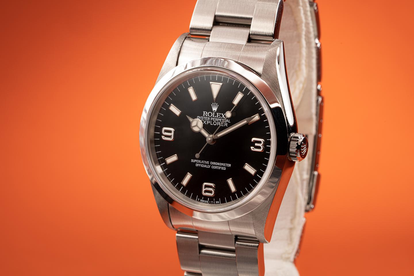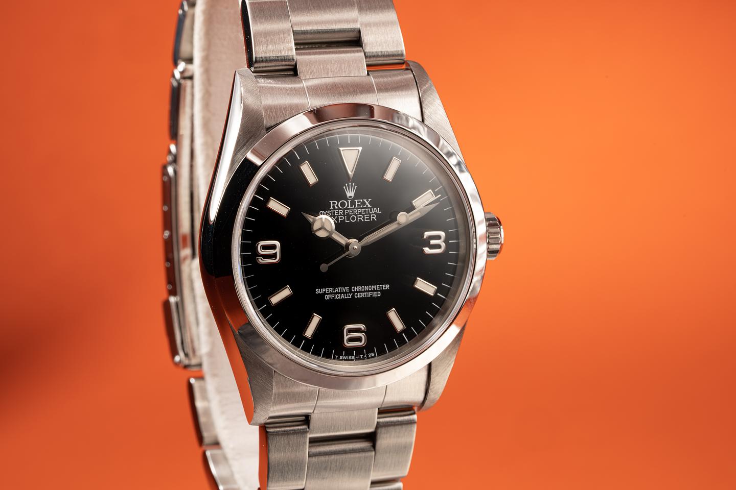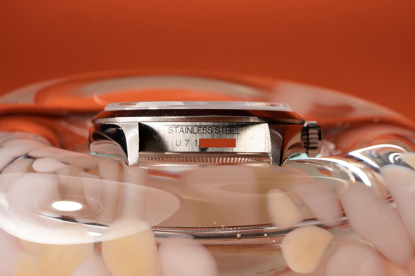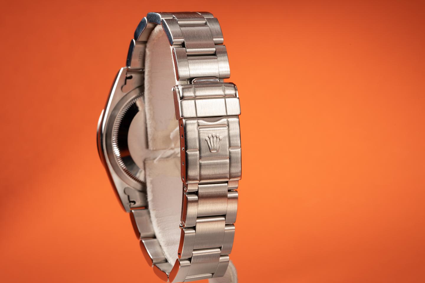 Bracelet: Excellent 13 link oyster bracelet with light stretch for its age. The clasp is stamped with a 1998 date code.