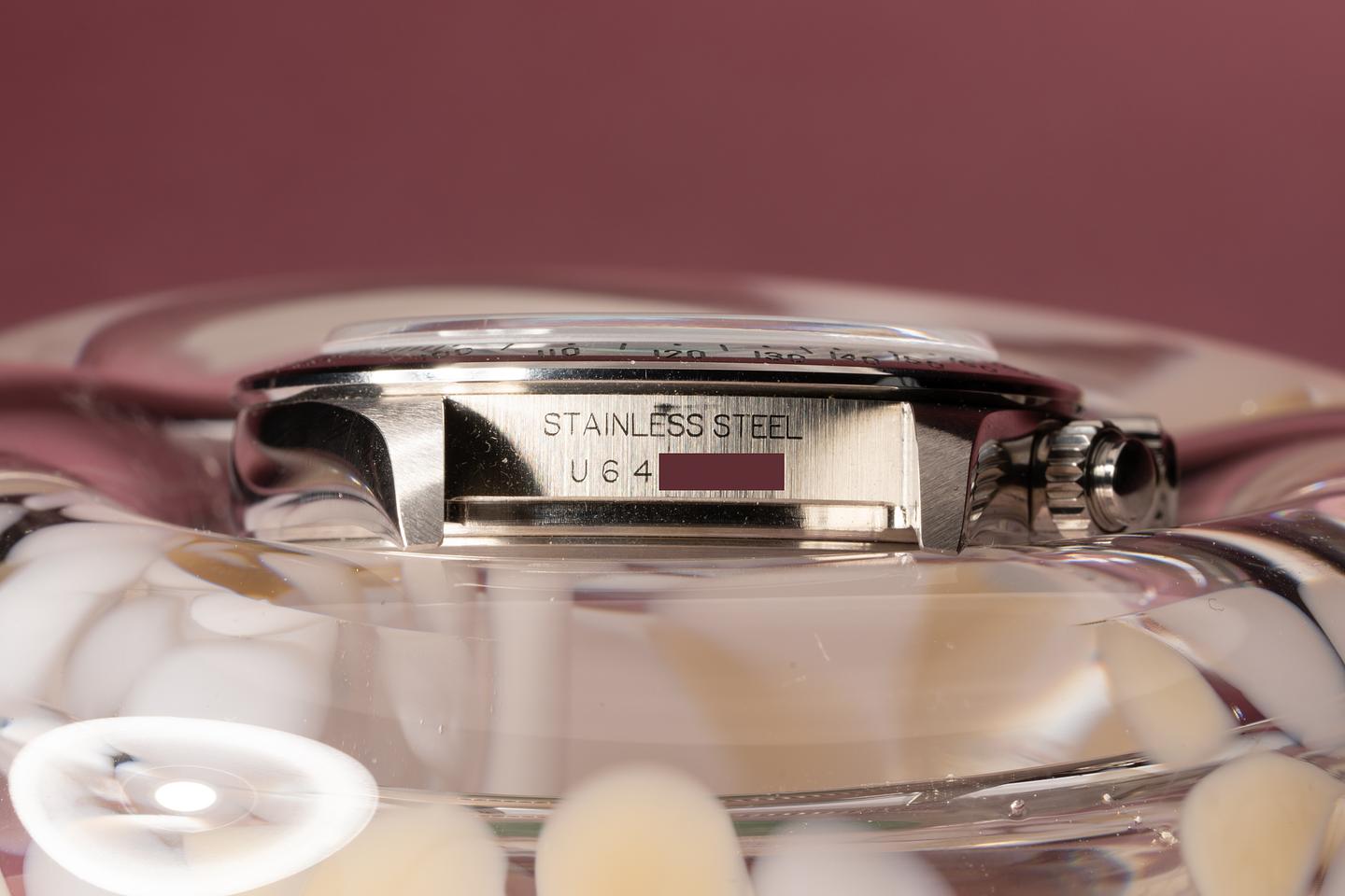 Bracelet: The 12 link bracelet shows extremely light wear and appears to be unworn. The bracelet comes with 2 extra links that were removed by us so that the watch would fit on the stand we use for photographing.