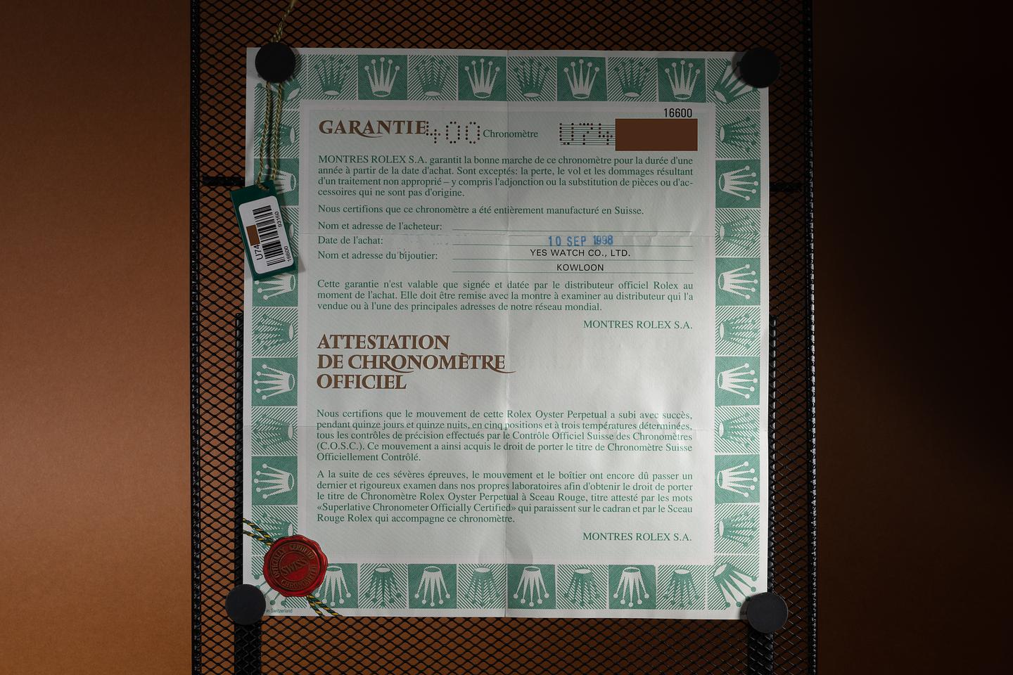 Bracelet: The 11-link Oyster bracelet is excellent, showing only very light stretch for its age. The clasp is stamped with a matching 1997 date code.