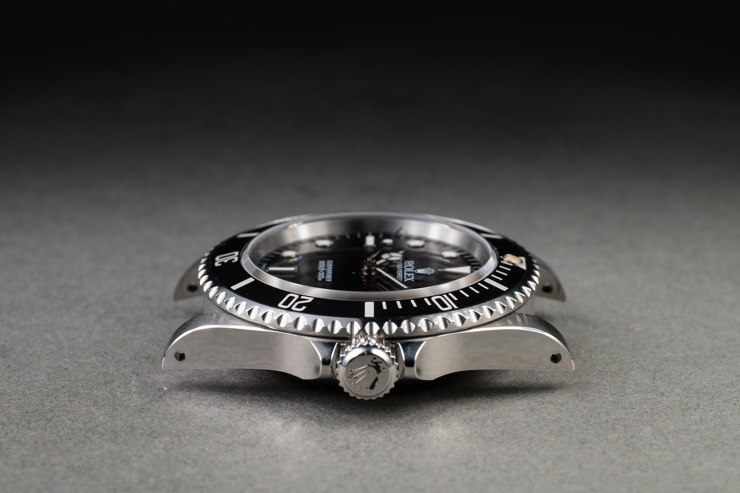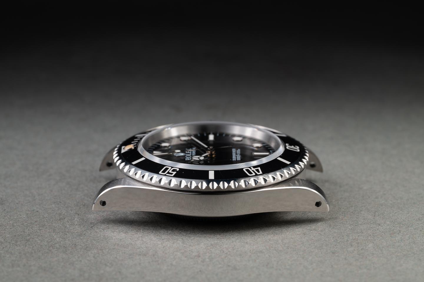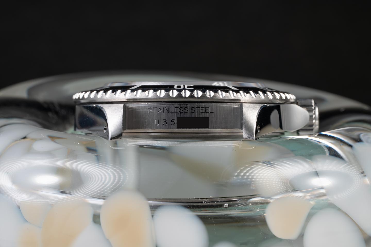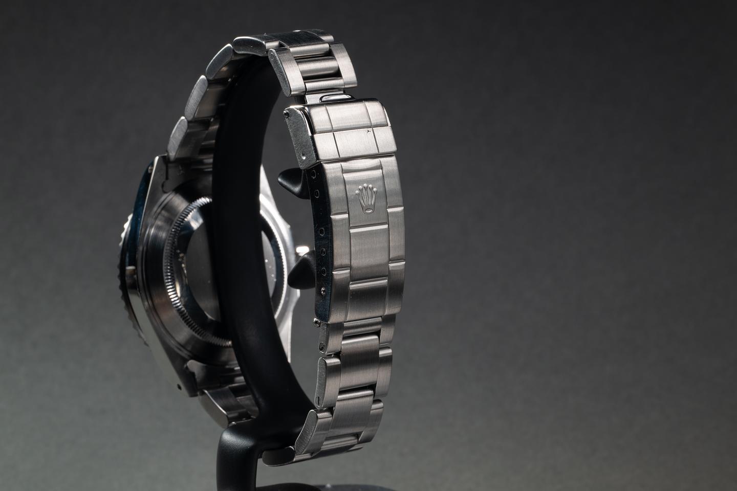 Case: The thick and even case has just returned from polishing, showing sharp, prominent bevels. The black bezel insert is also in excellent condition, showing some light wear from use.