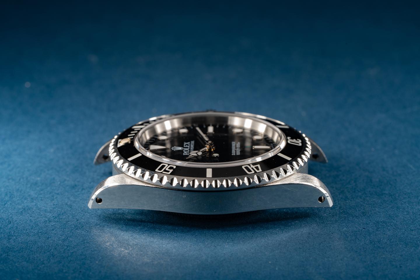 Case: The previously polished case is excellent and features wide, sharp, and prominent bevels. The black bezel insert is also excellent showing only light wear from use.