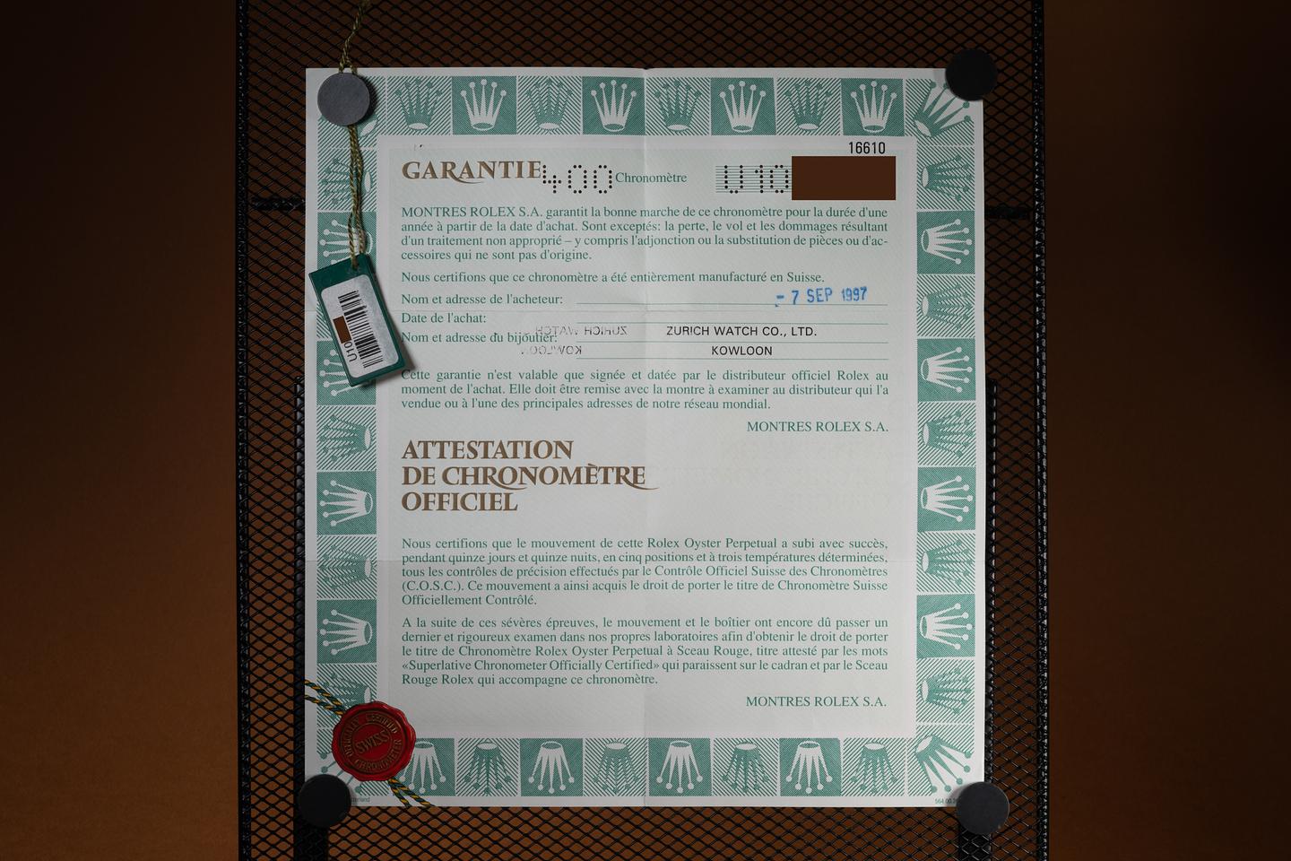 Bracelet: The 11-link Oyster bracelet is excellent, showing only very light stretch for its age. The clasp is stamped with a matching 1997 date code.