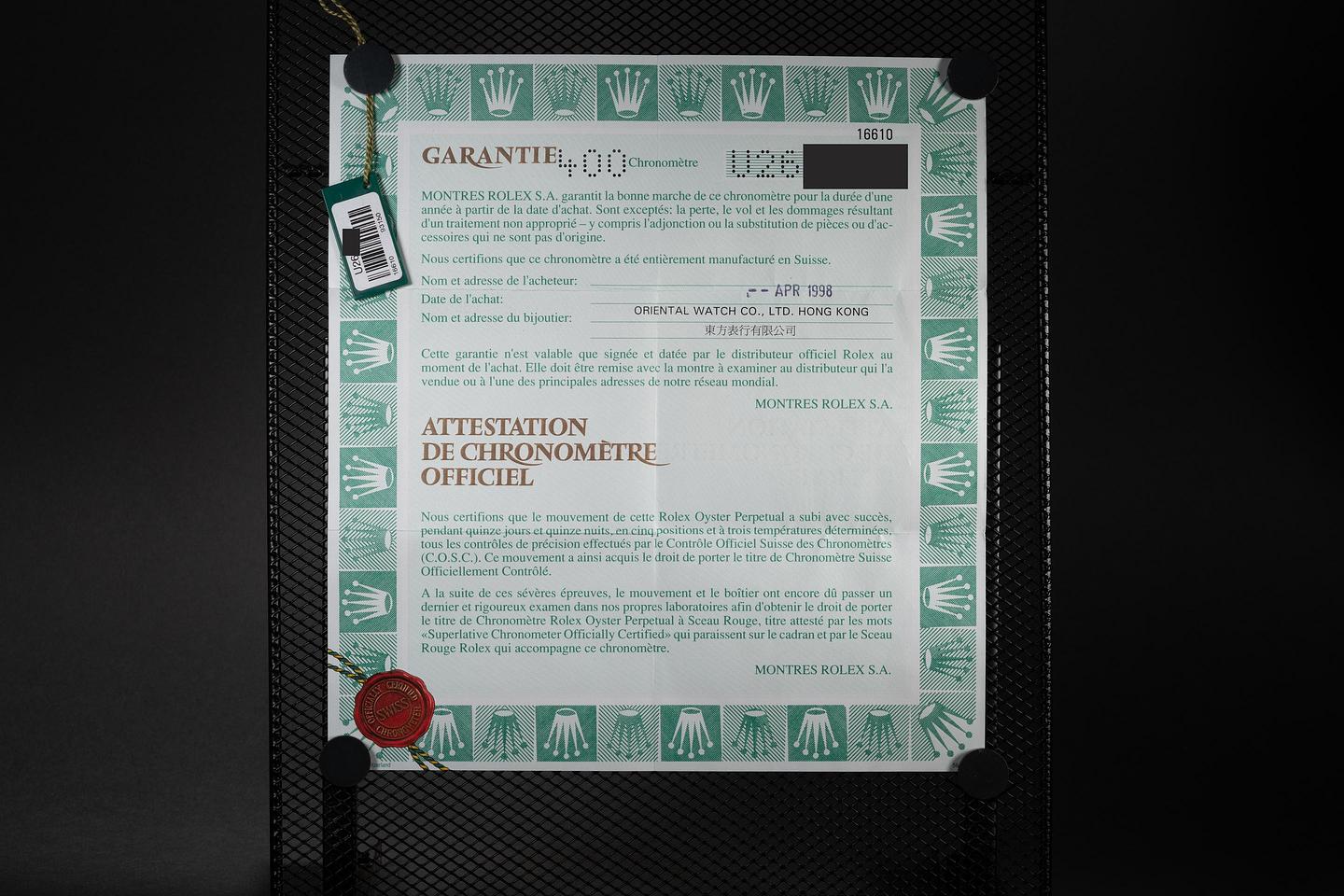 Bracelet: The 11-link Oyster bracelet is excellent, showing only very light stretch for its age. The clasp is stamped with a matching 1997 date code.