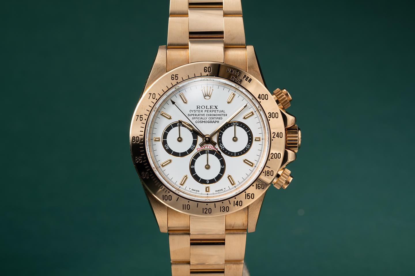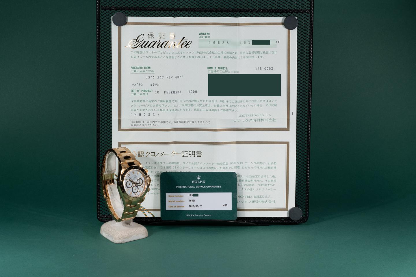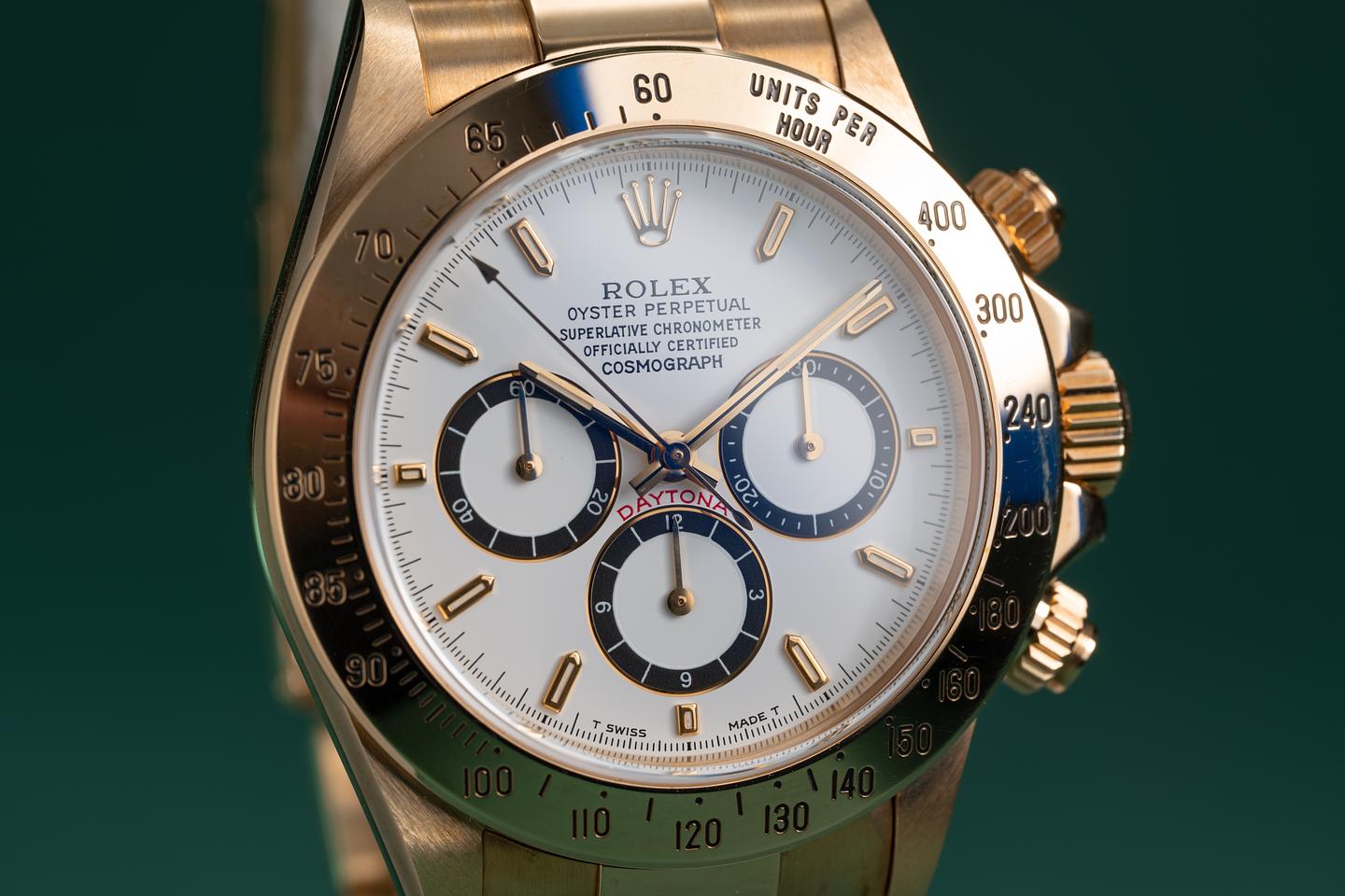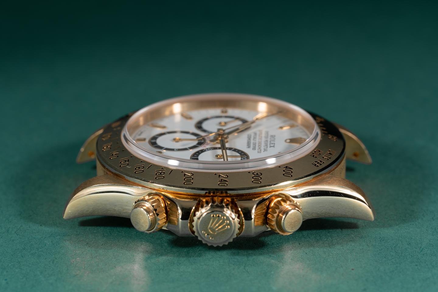 Bracelet: The 13 link 18K yellow gold Oyster bracelet is excellent showing extremely light stretch for its age. The clasp is stamped with a matching 1998 date code.