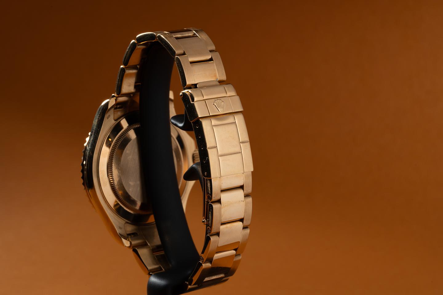 Bracelet: The unpolished 12 link 18K yellow gold Oyster bracelet is excellent showing a warm rosy patina and only extremely light stretch for its age. The clasp is stamped with a matching 1998 date code.