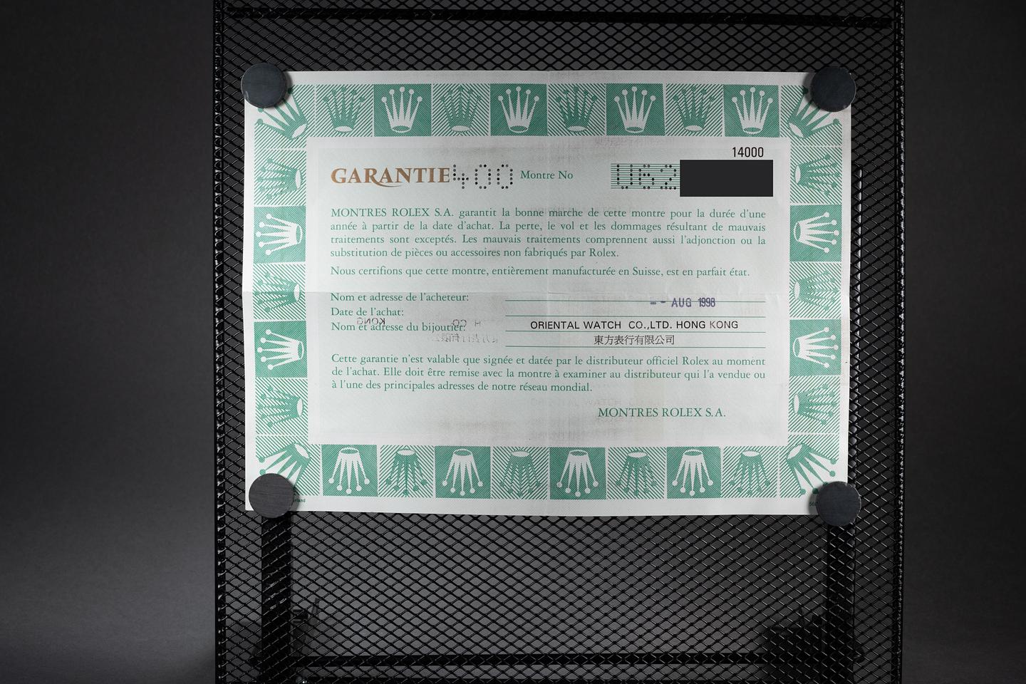 Bracelet: The 12 link Oyster bracelet is excellent showing only very light stretch for its age. The clasp is stamped with a matching 1998 date code.