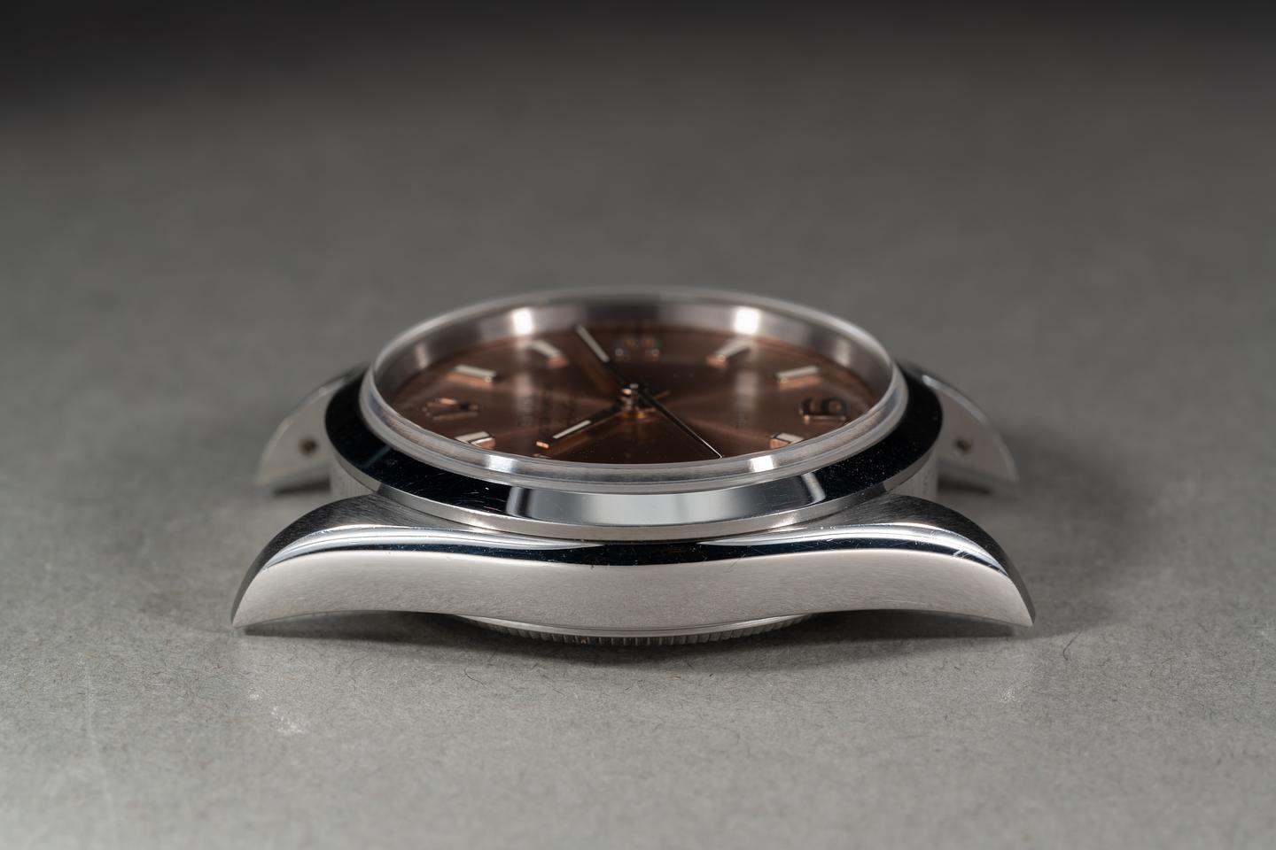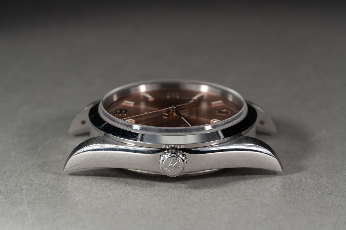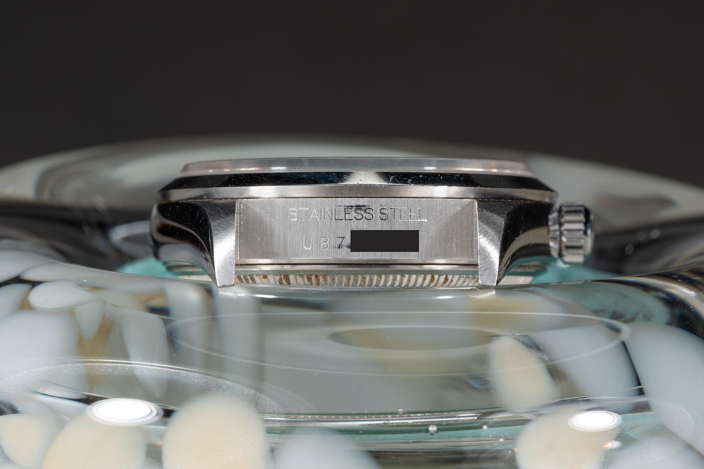 Case: The sharp 34mm case is excellent showing average wear from use. The smooth stainless bezel is also in excellent condition showing some light wear from use.