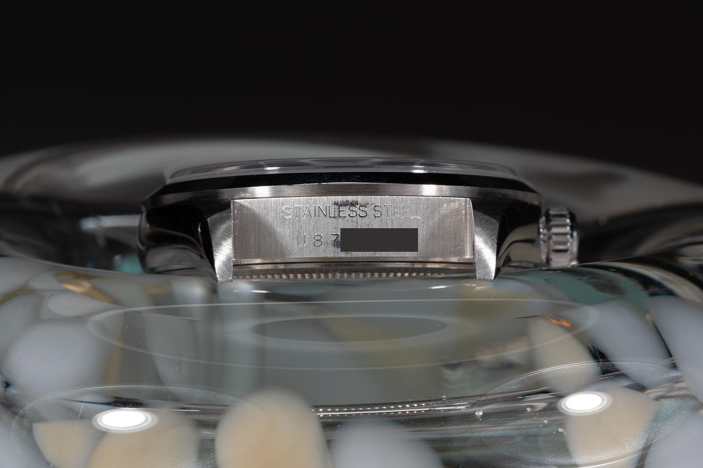 Case: The 34mm case is excellent showing only light wear from use. The smooth stainless bezel is also in excellent condition showing only light wear from use.