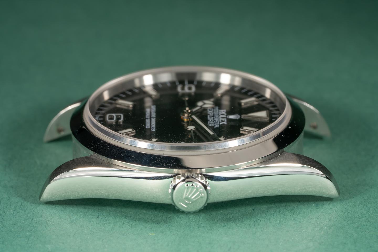 Case: The recently polished case is excellent and features sharp prominent bevels. The stainless bezel is also excellent showing little if any wear.