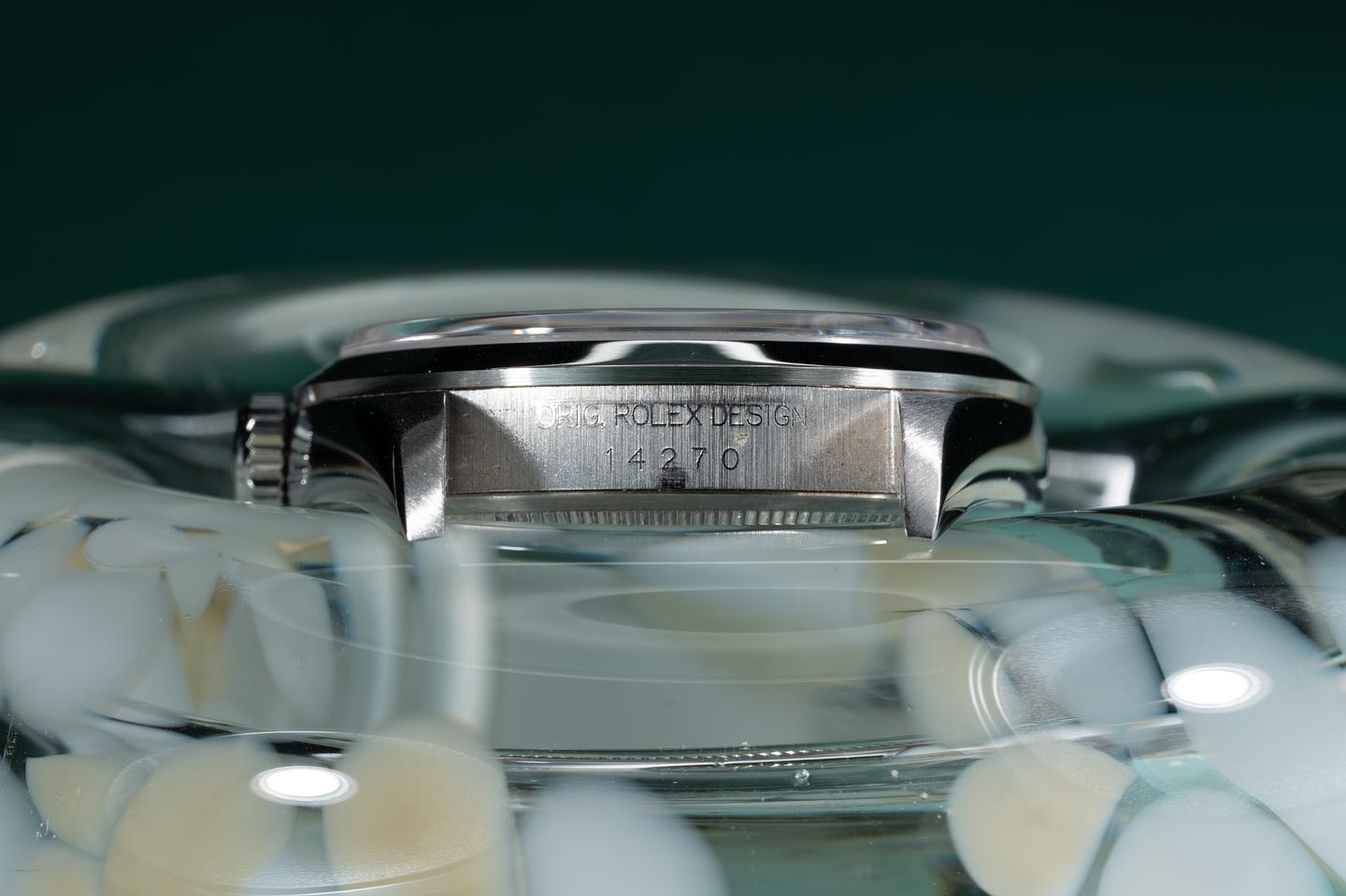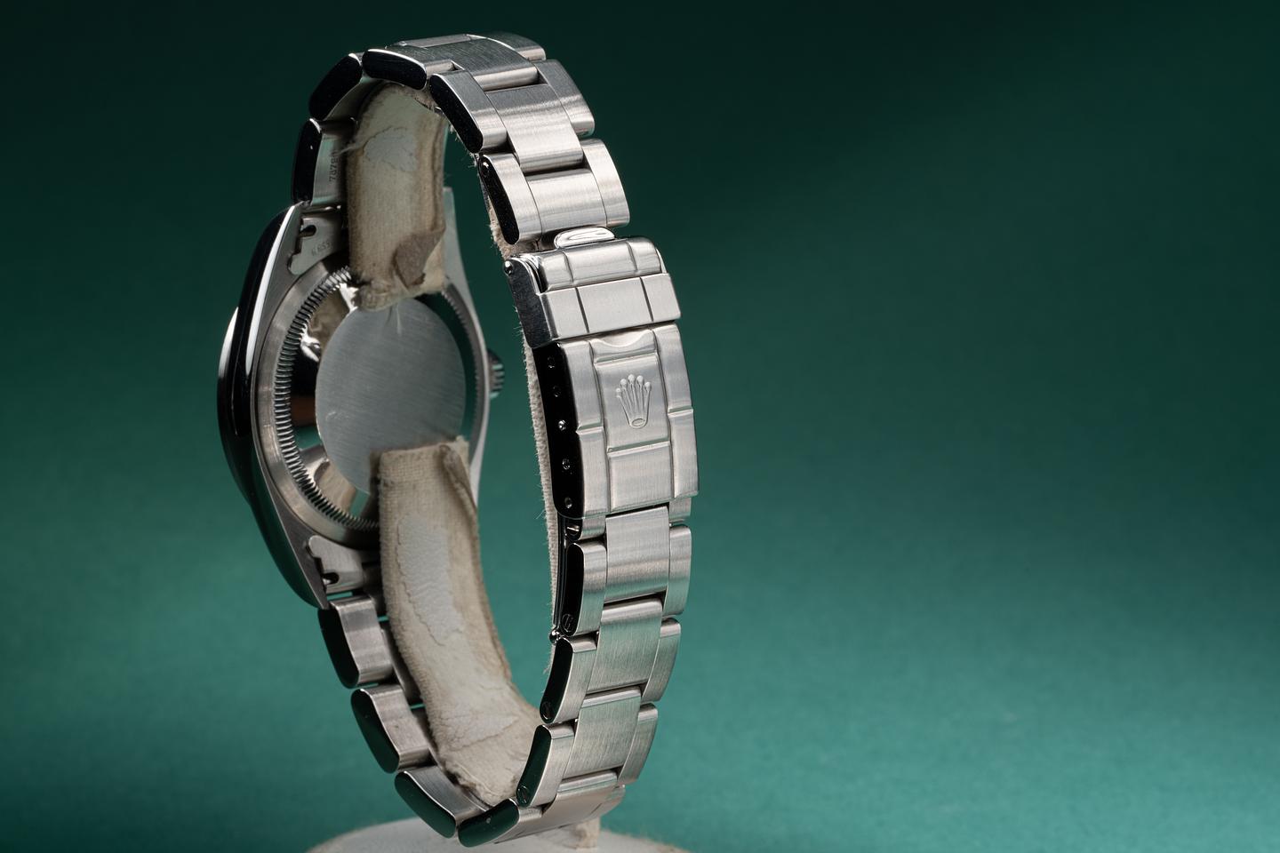 Bracelet: The 12 link oyster bracelet is excellent showing only very light stretch for its age. The clasp is stamped with a matching 1998 date code.