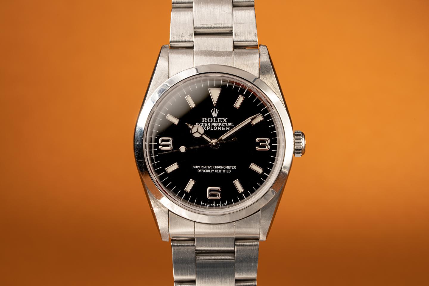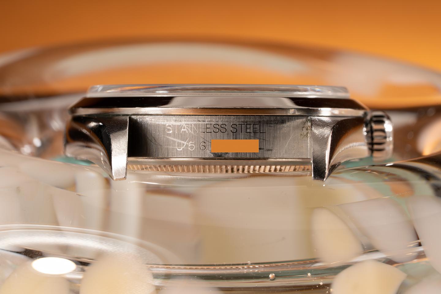 Notes: This dial is from the era Rolex was transitioning from tritium to luminova. It's widely thought that instead of Rolex throwing out the already produced dials marked "T Swiss- T<25" they instead just filled them with the new Luminova luminous material and sent them out to ADs.