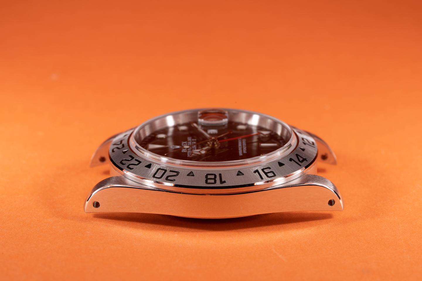 Case: The case has just returned from polishing showing sharp prominent bevels. The stainless bezel is also in excellent condition showing a sharp and well defined sunburst finish.