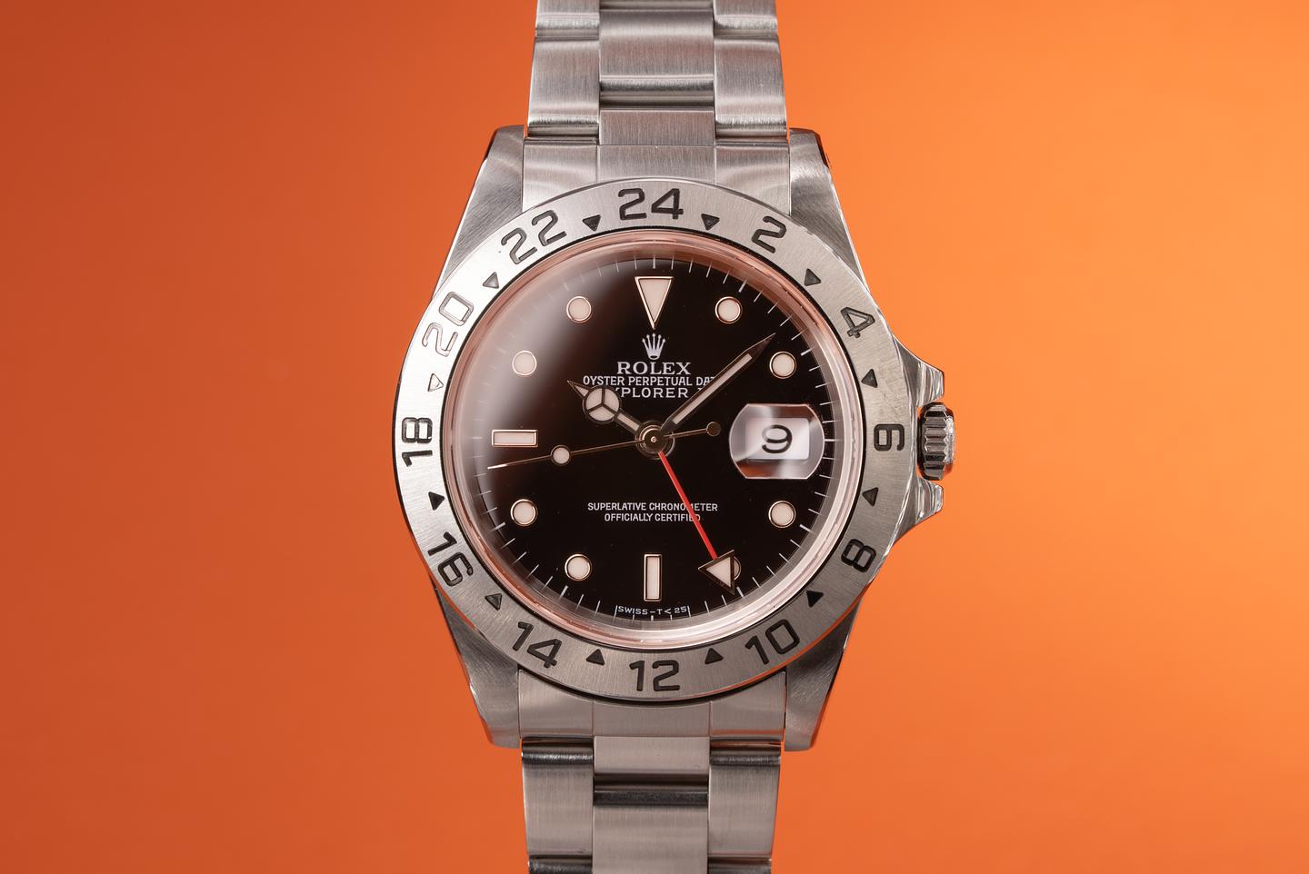 Notes: This dial is from the era Rolex was transitioning from tritium to luminova. It's widely thought that instead of Rolex throwing out the already produced dials marked "T Swiss- T<25" they instead just filled them with the new Luminova luminous material and sent them out to ADs.