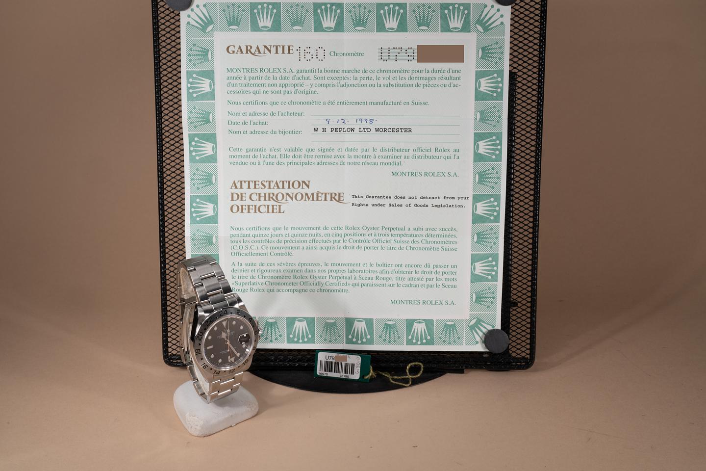 Bracelet: The 12 link Oyster bracelet is excellent and shows only very light stretch. The clasp is stamped with a matching "U" 1998 date code.