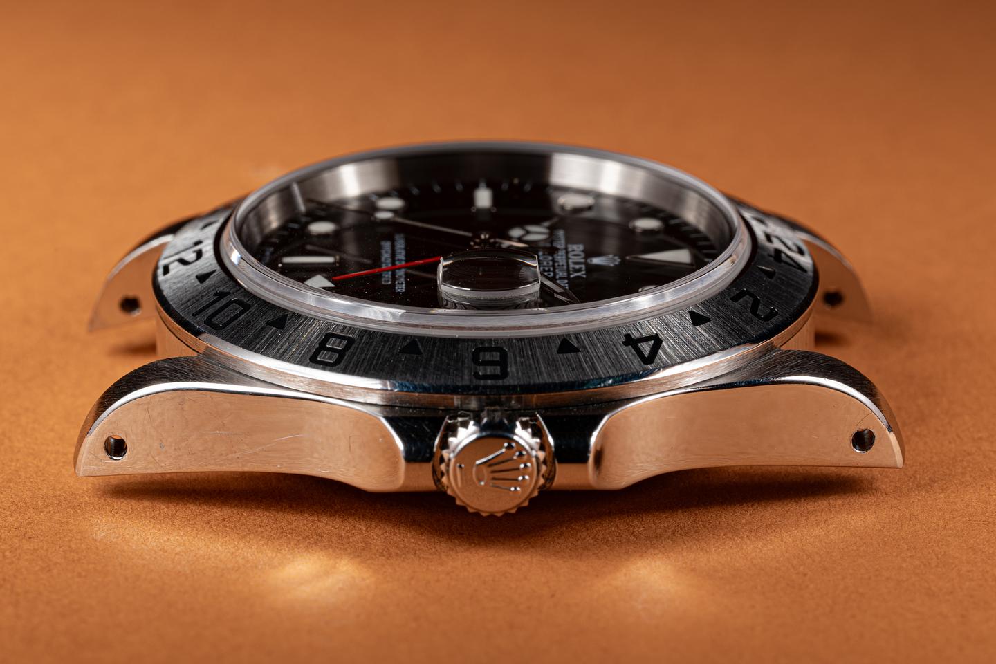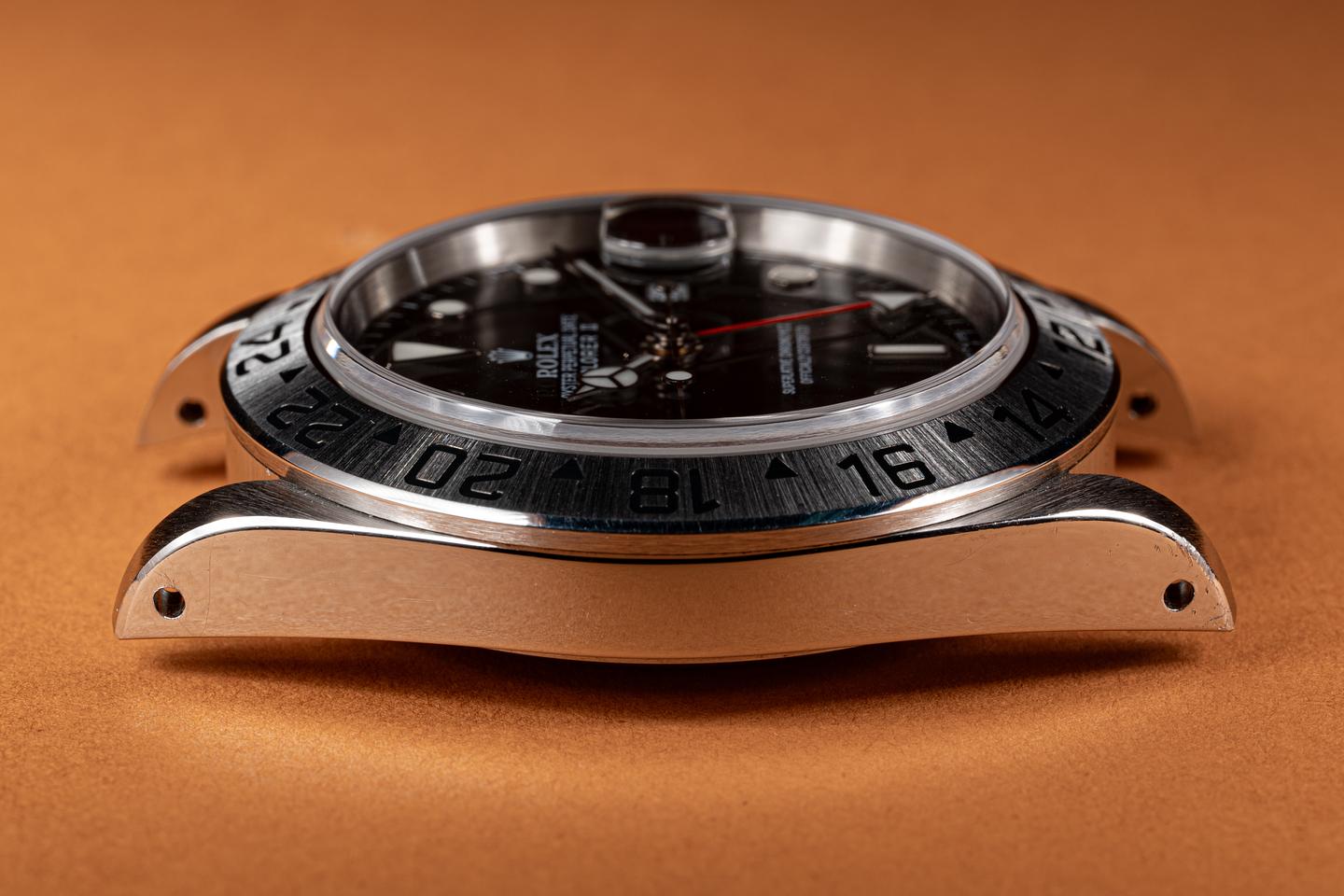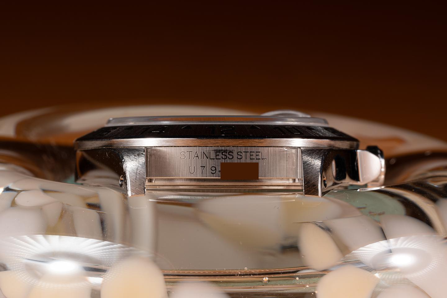 Case: The unpolished case is excellent showing some light wear from use. The stainless bezel is also excellent showing a sharp well defined sunburst finish and only very light wear.