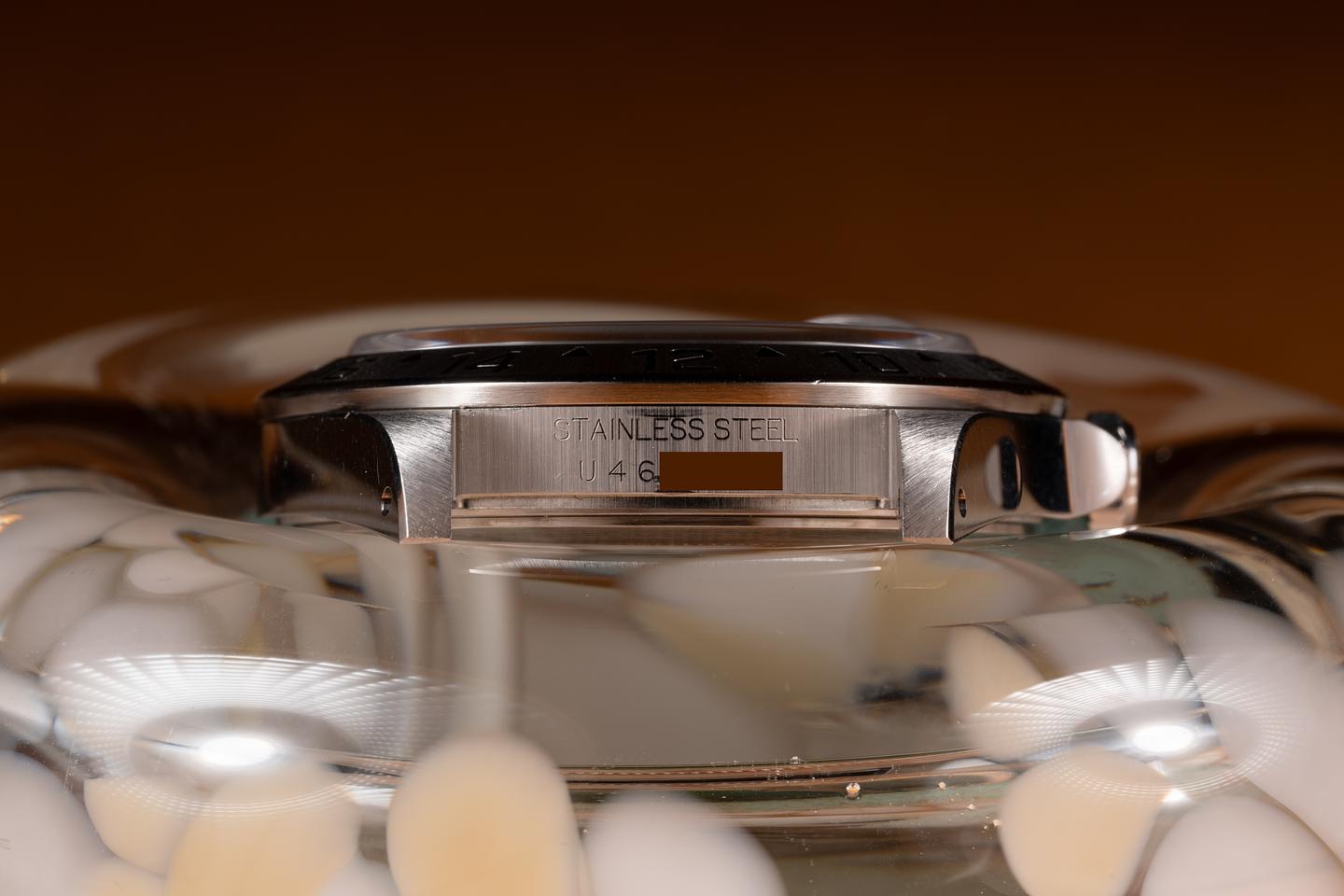 Case: The thick and even case is excellent showing sharp bevels and only light wear from use. The stainless bezel is also in excellent condition showing only very light wear from use.