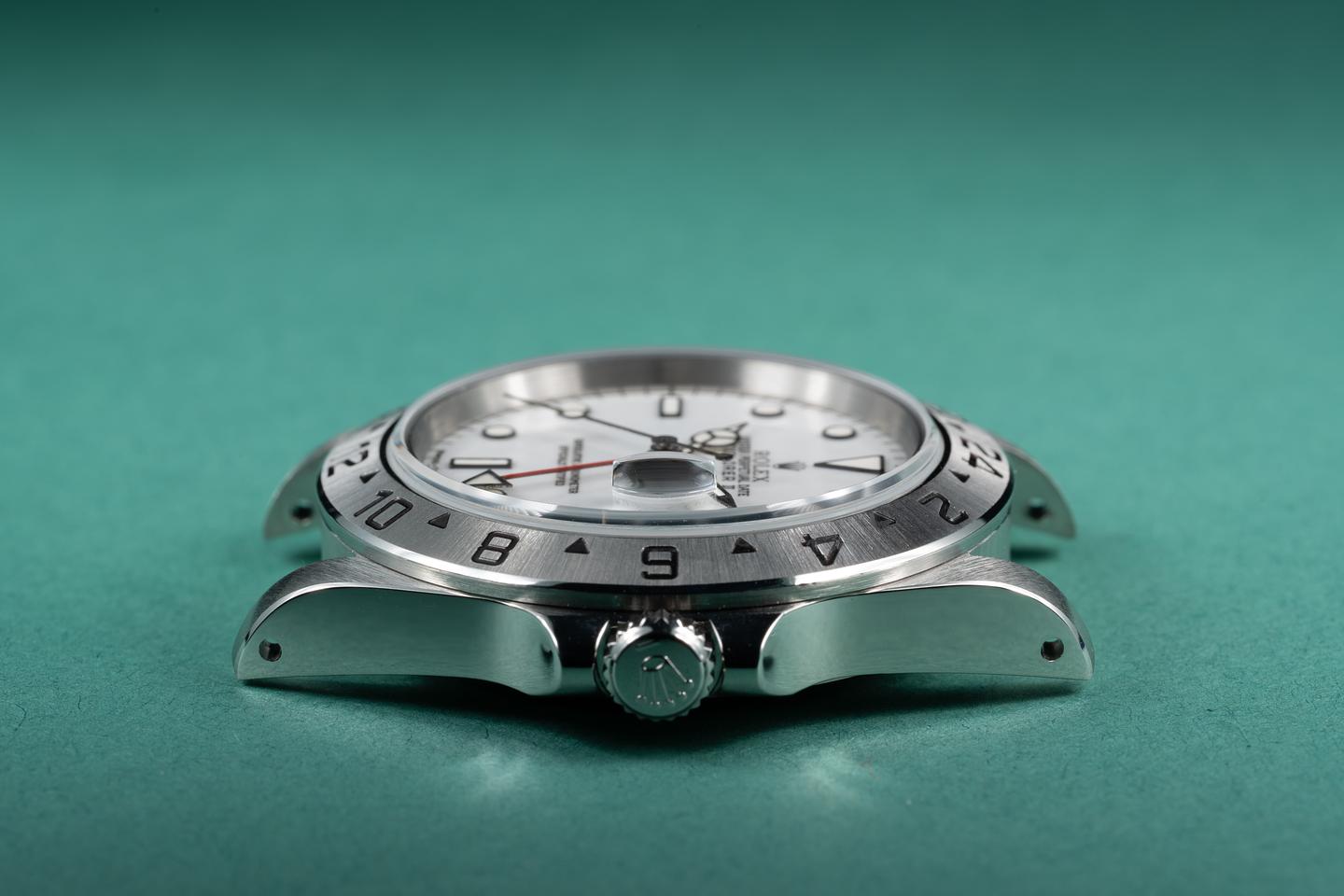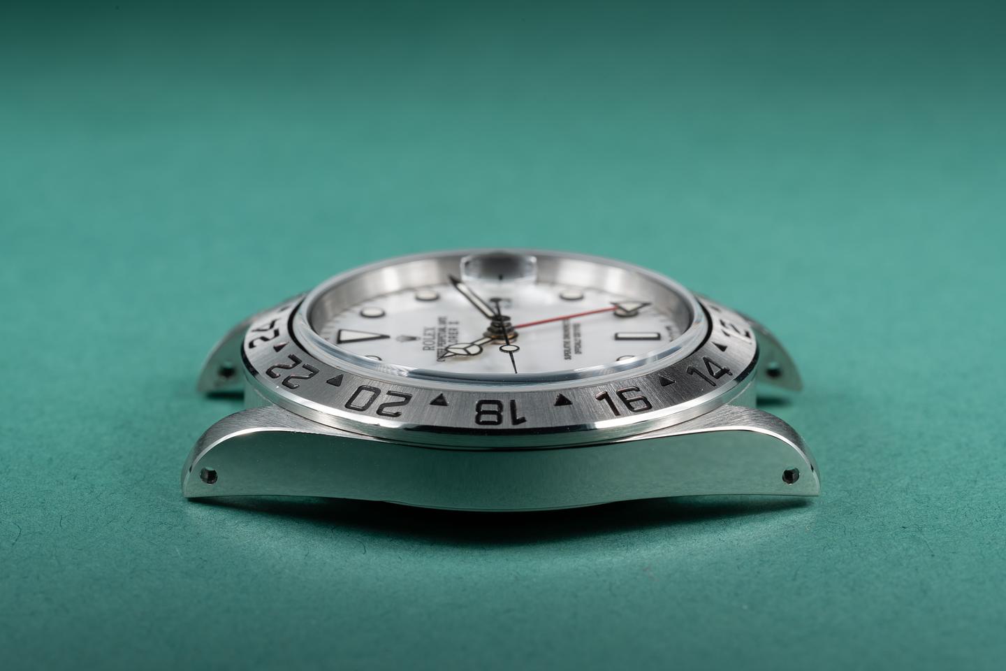 Case: The case has just returned from polishing showing sharp prominent bevels. The stainless bezel is also freshly polished showing a sharp well defined sunburn finish.