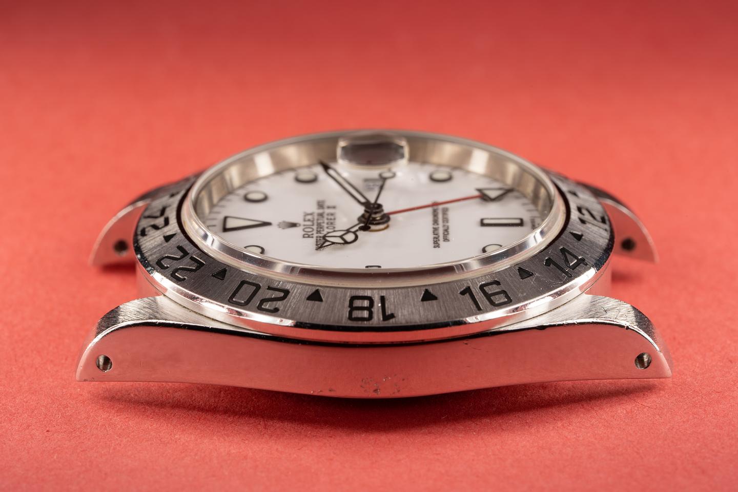Case: The previsously polished case is excellent showing some wear from use. The stainless bezel is also in excellent condition and shows some light wear from use.