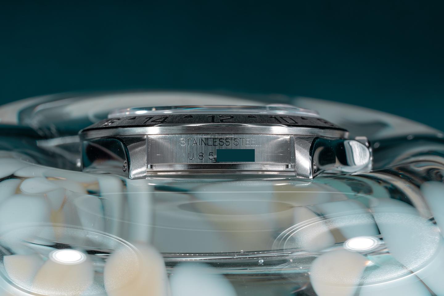 Case: The recently polished case is excellent showing sharp prominent bevels and only extremly light wear from use. The stainless bezel is also excellent showing a sharp well-defined sunburst finish and only extremely light wear from use.