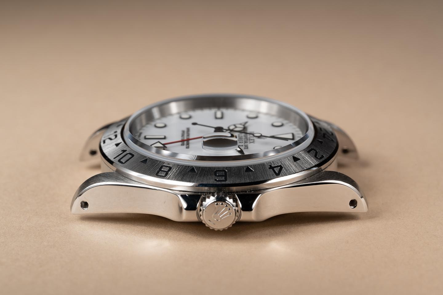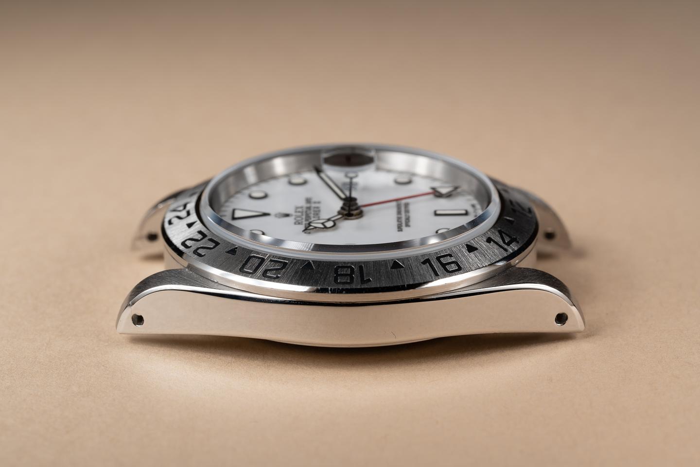 Case: The previously polished case is excellent showing wide, sharp, prominent bevels, and only some light wear from use. The stainless bezel is also in excellent condition showing only light wear from use.