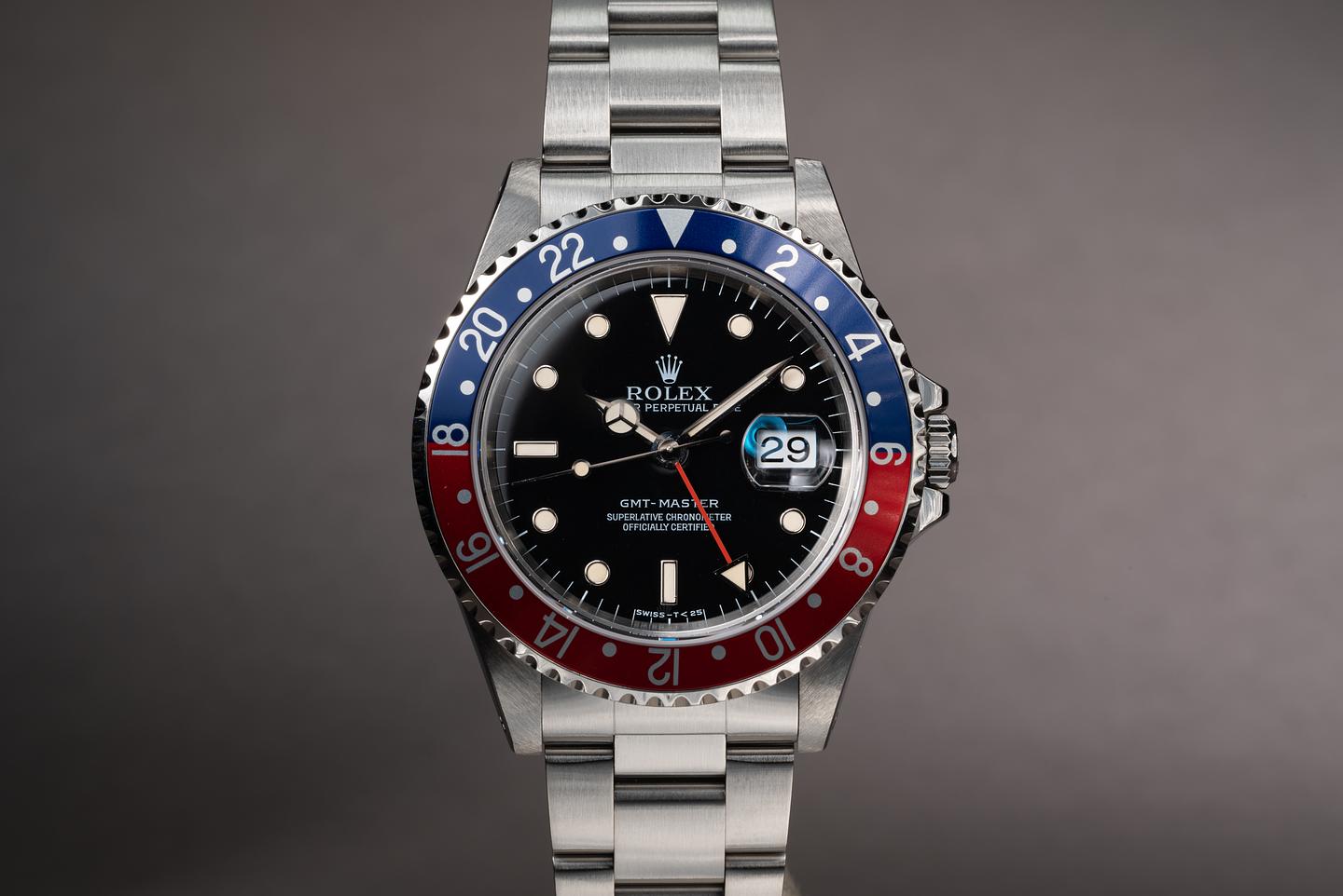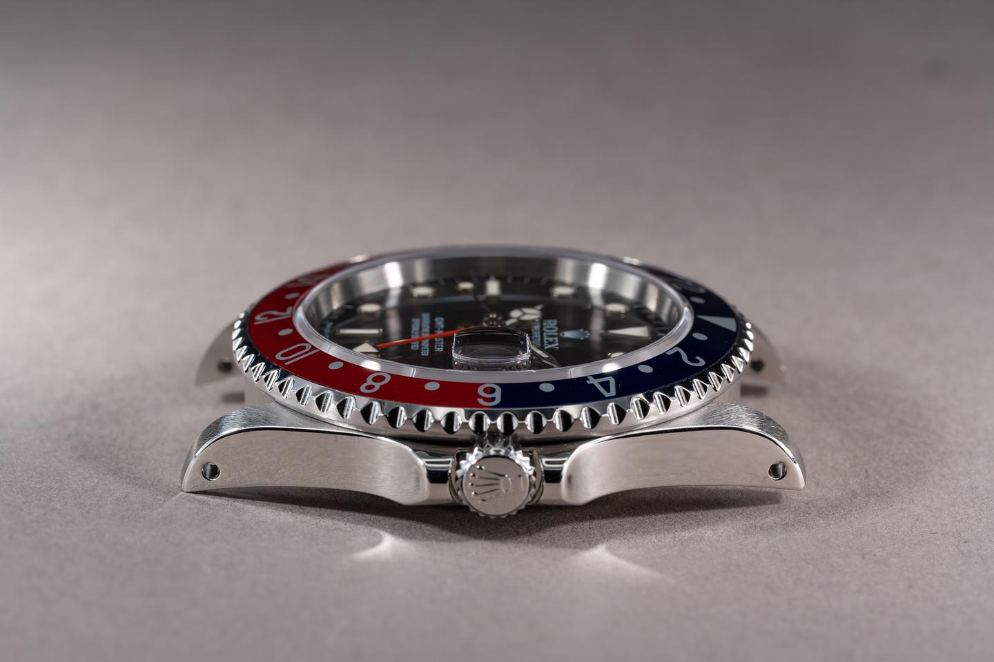 Case: The thick and even case is excellent showing only very light wear from use. The blue and red "Pepsi" bezel insert is also in excellent condition showing only very light wear from use.