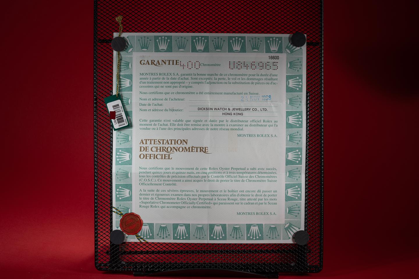 Bracelet: The 11 link Oyster bracelet is excellent showing only very light stretch for its age. The clasp is stamped with a matching 1998 date code.