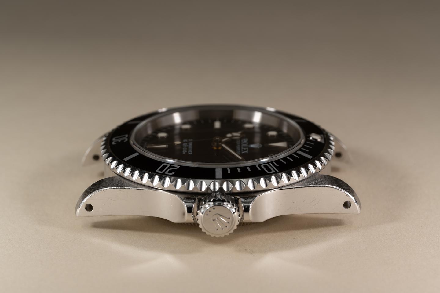 Case: The previously polished case is excellent showing sharp prominent bevels and some light wear from use. The black bezel insert is also in excellent condition showing only light wear from use.