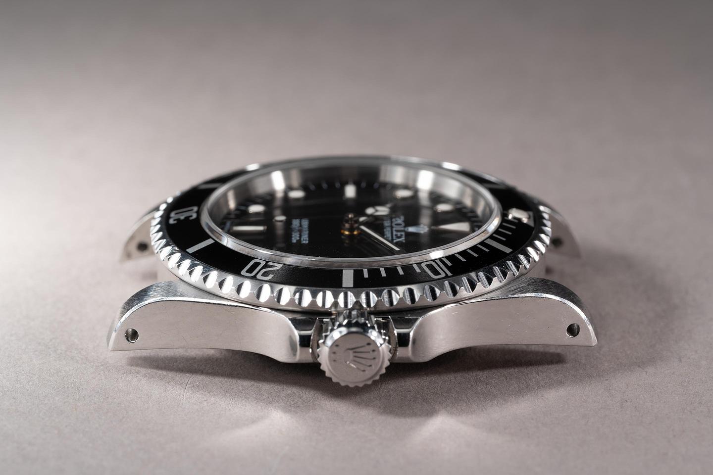 Case: The thick and even case is excellent showing sharp prominent bevels and some light wear from use. The black bezel insert is also in excellent condition showing only very light wear from use.