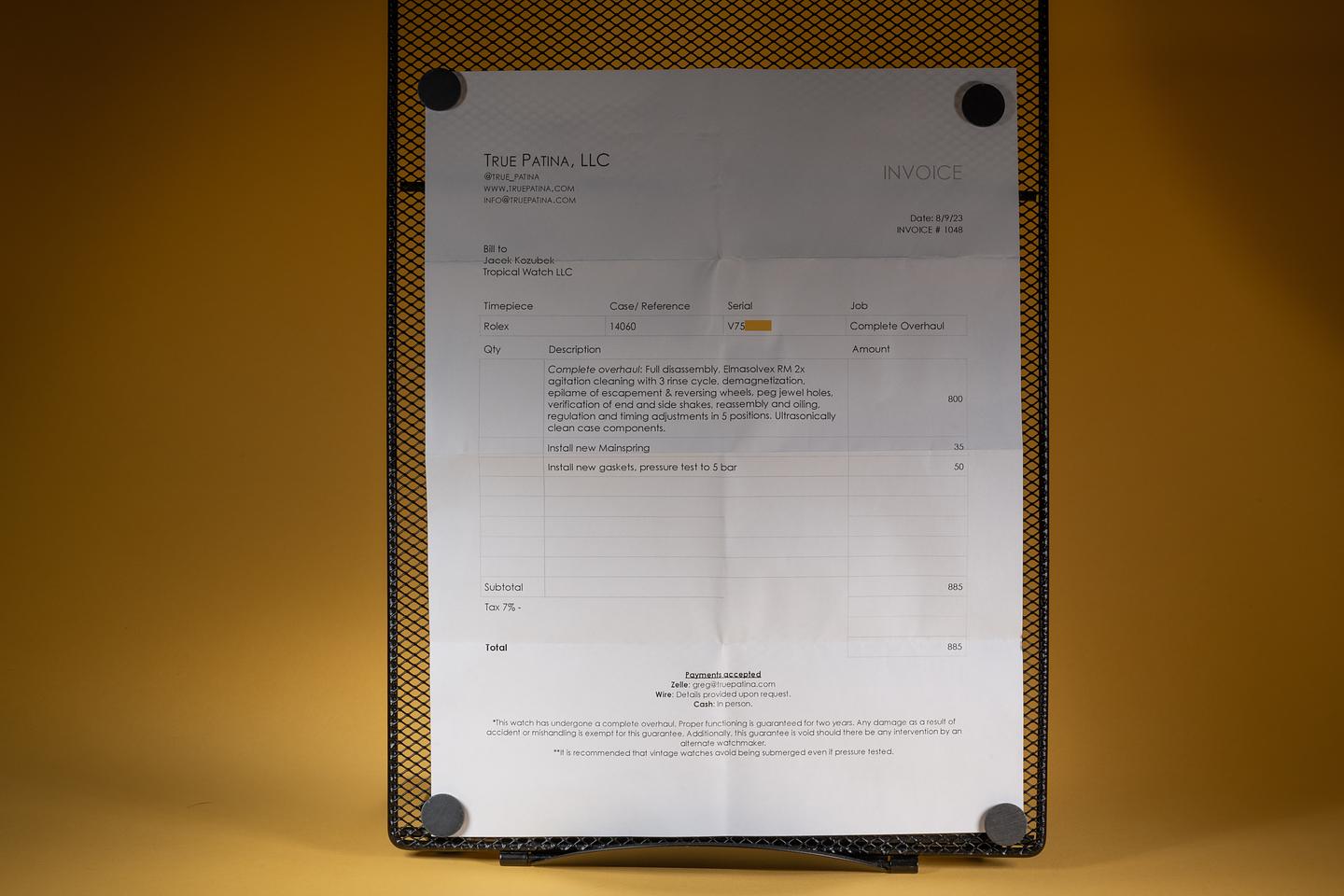 Accessories: Papers & August 2023 Service Papers from True Patina.