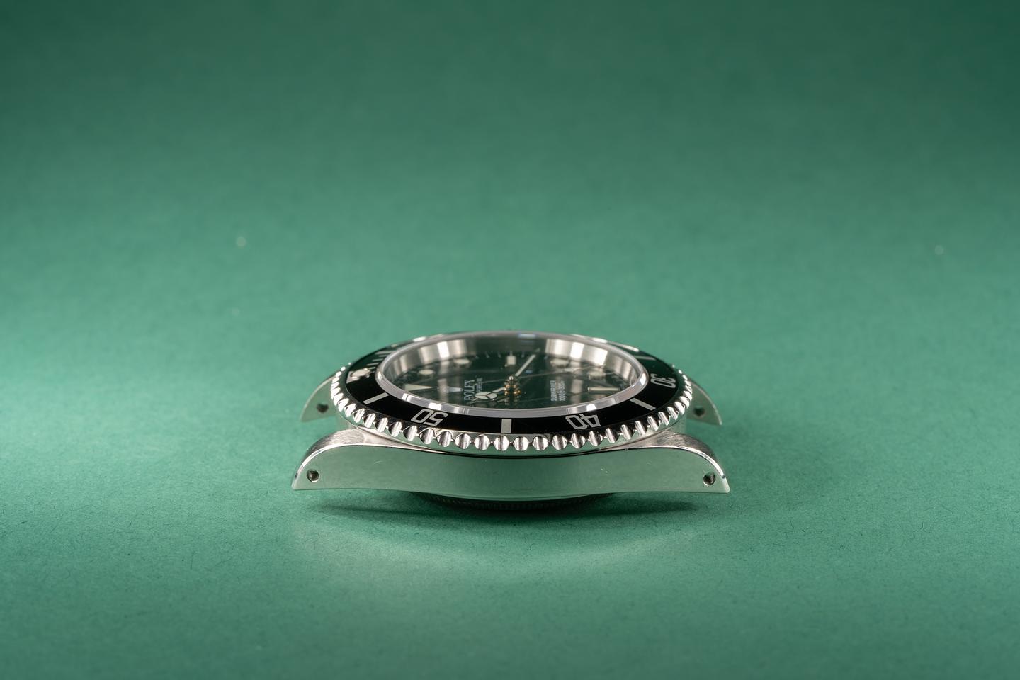 Case: Excellent and thick case with shap and prominent bevels. The black bezel insert show some light wear.
