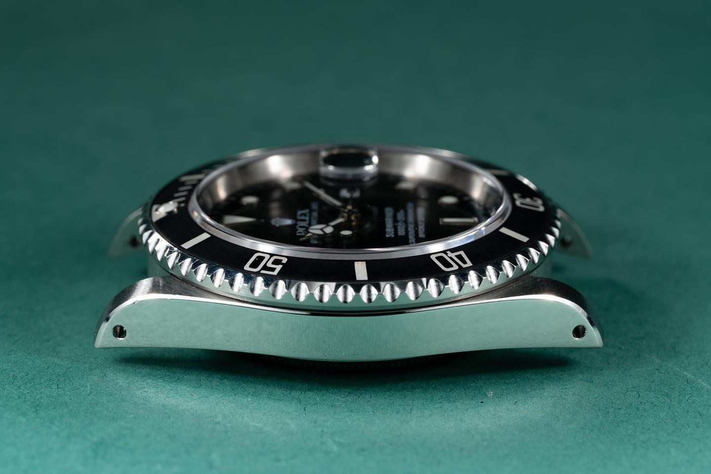 Case: The previously polished case is excellent showing sharp prominent bevels and some light wear from use. The black bezel insert is also in excellent condition showing only light wear from use.