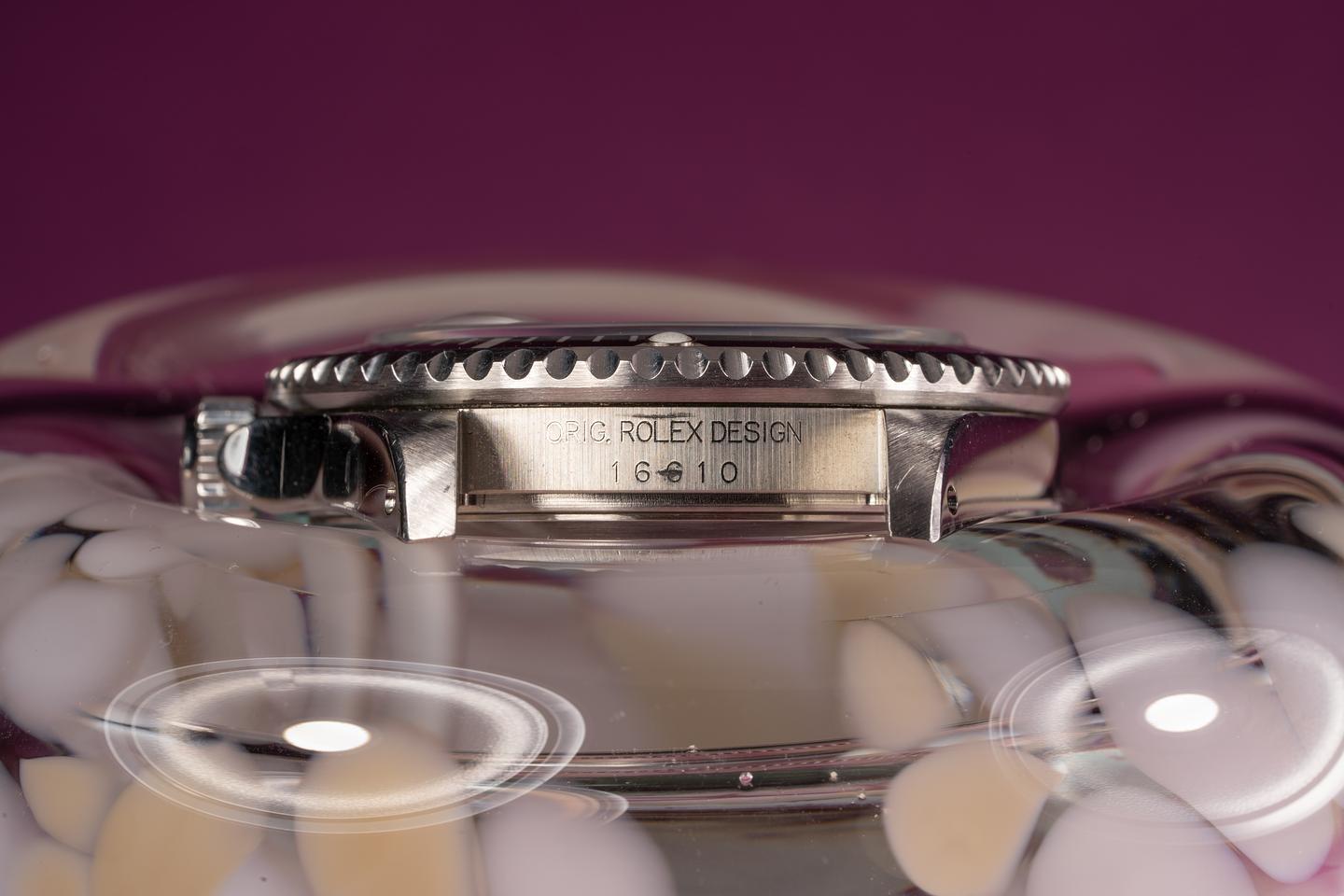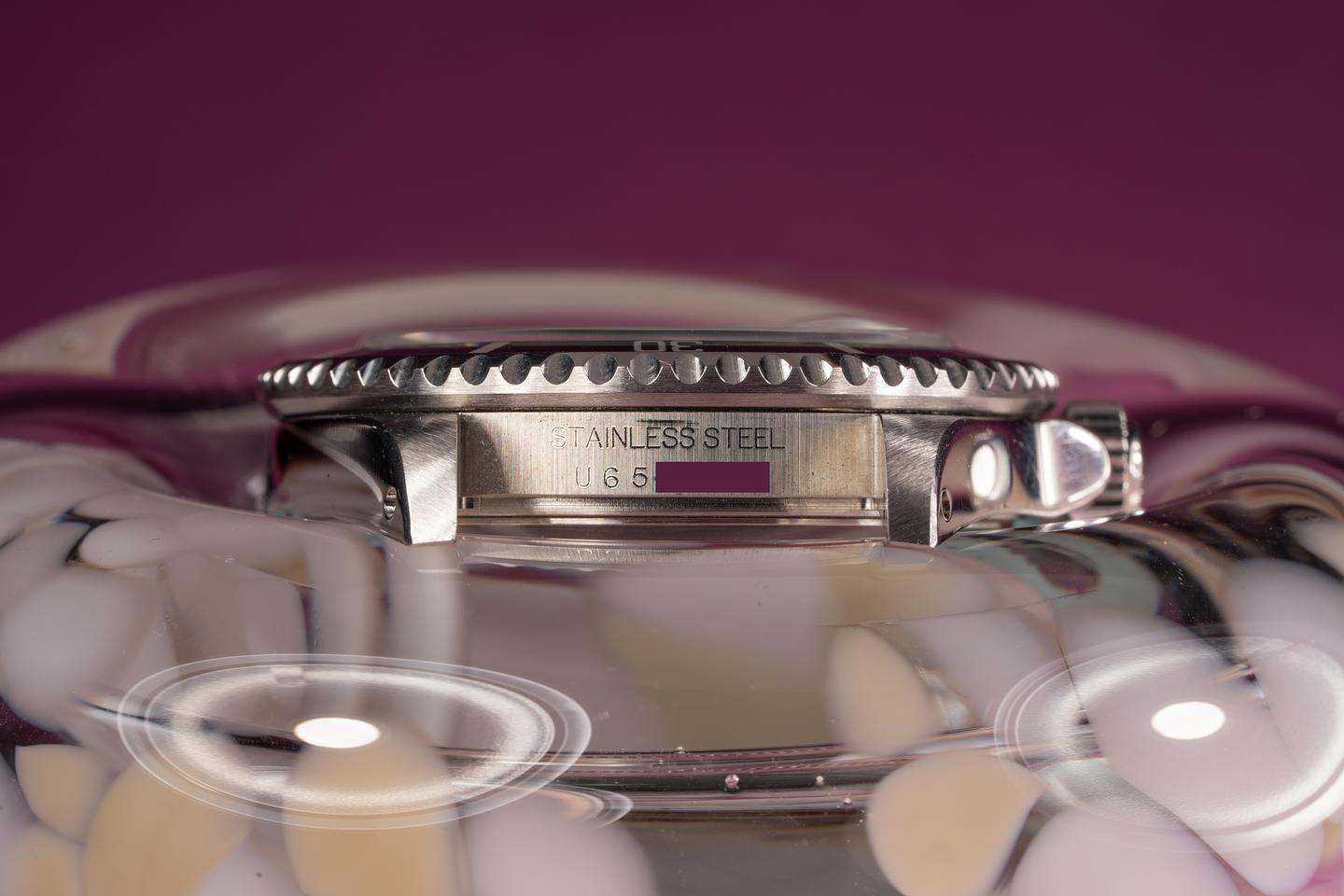 Case: The previously polished case is excellent showing prominent bevels and only light wear from use. The black bezel insert is also in excellent condition and shows only very light wear.
