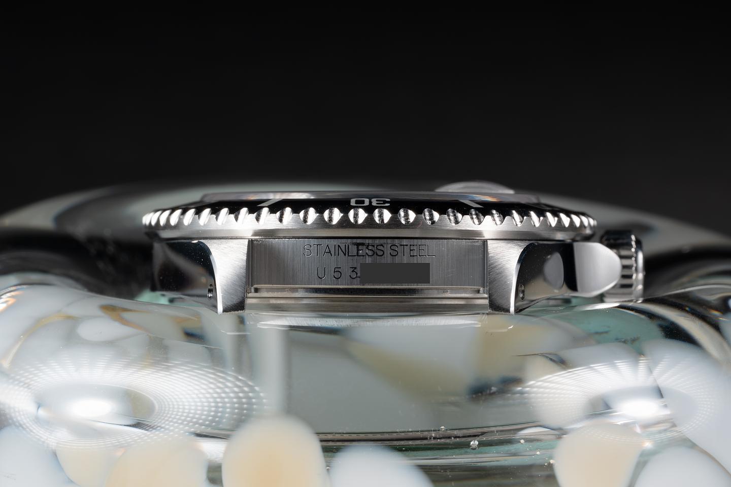 Case: The excellent case has just returned from polishing showing sharp bevels. The black bezel insert id also in excellent condition and has aged to a dark navy blue hue.