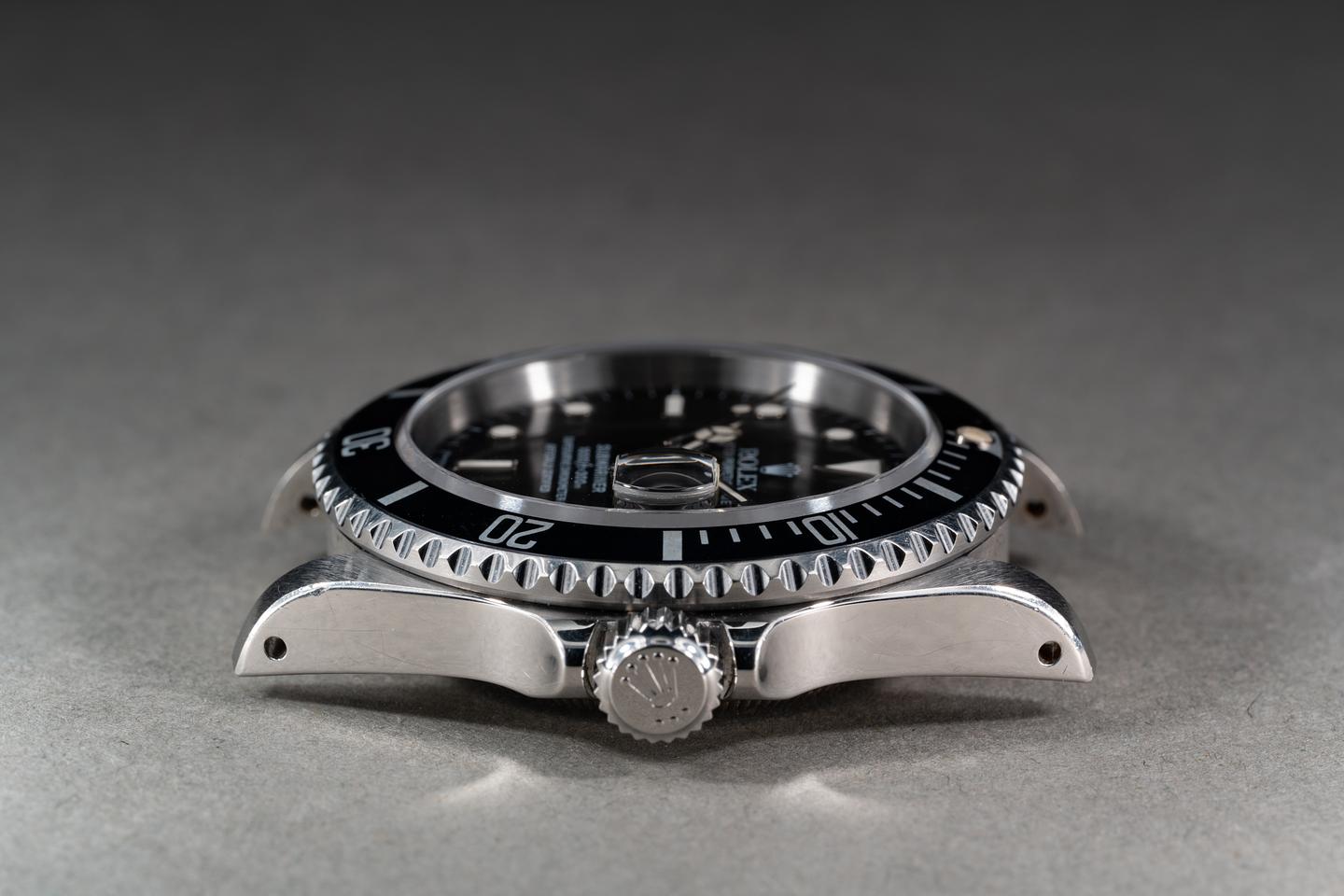 Case: The thick and even case is excellent showing sharp prominent bevels and only light wear from use. The black bezel insert is also in excellent condition showing only very light wear from use.