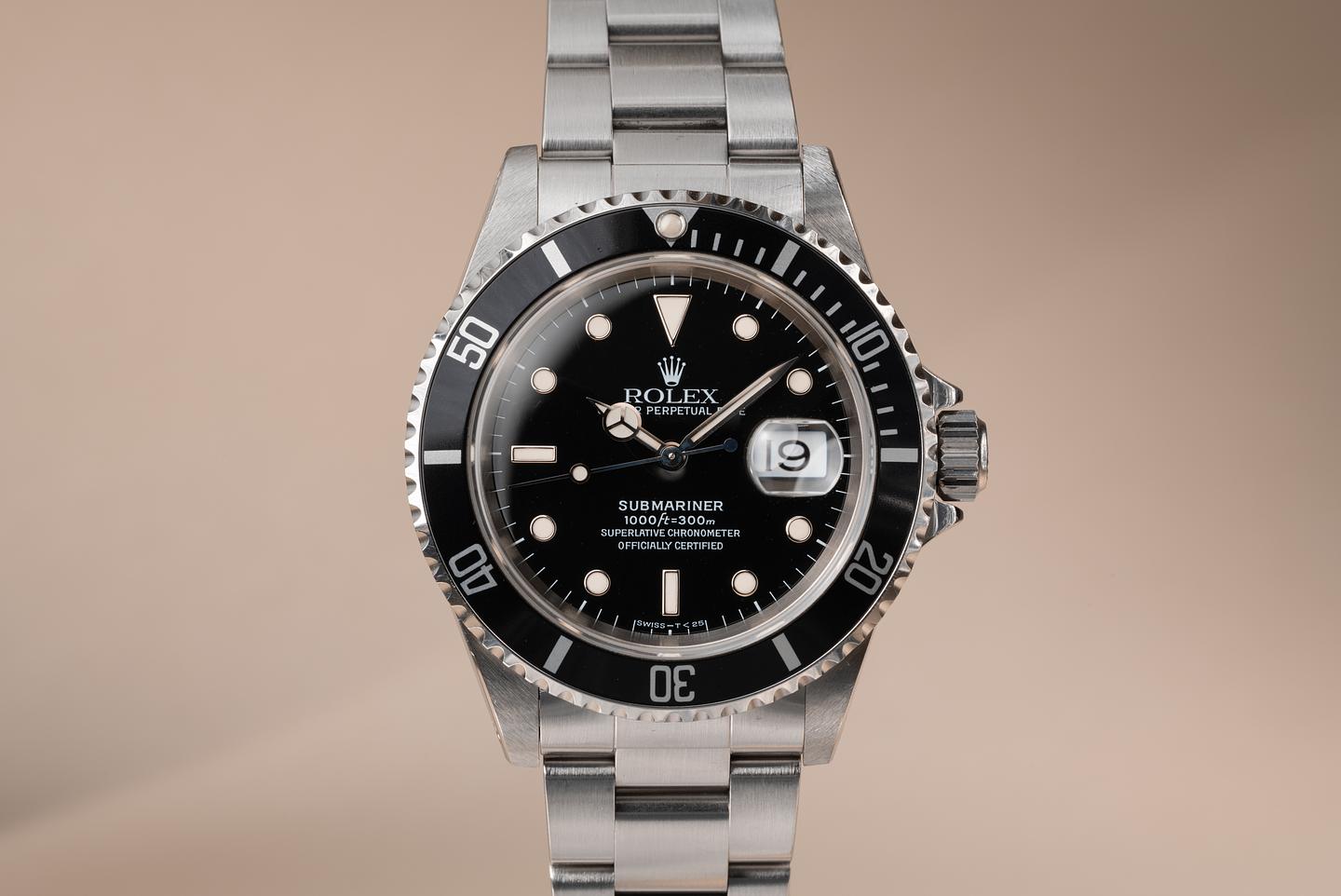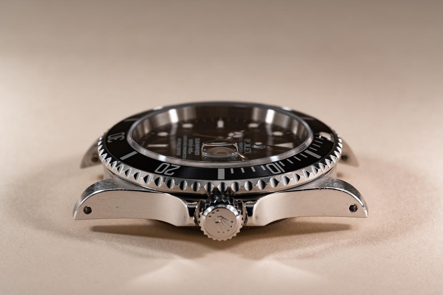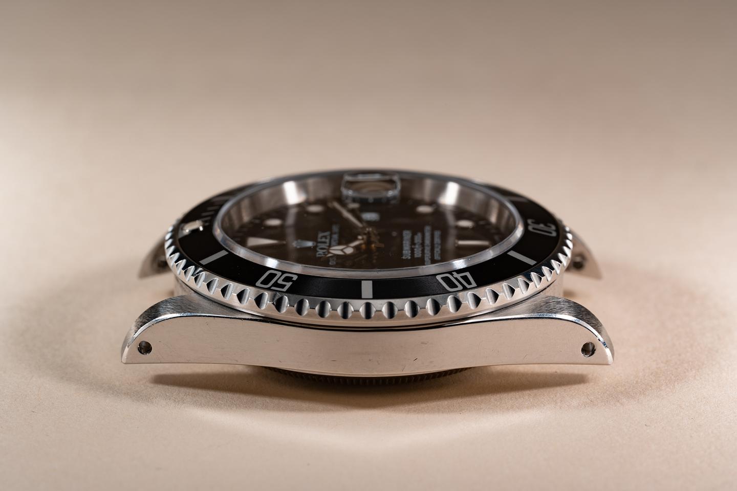 Case: The recently polished case is excellent showing sharp bevels and only very light wear from use. The black bezel insert is also in excellent condition showing only light wear from use.