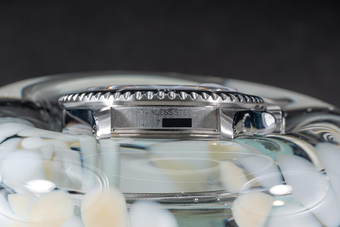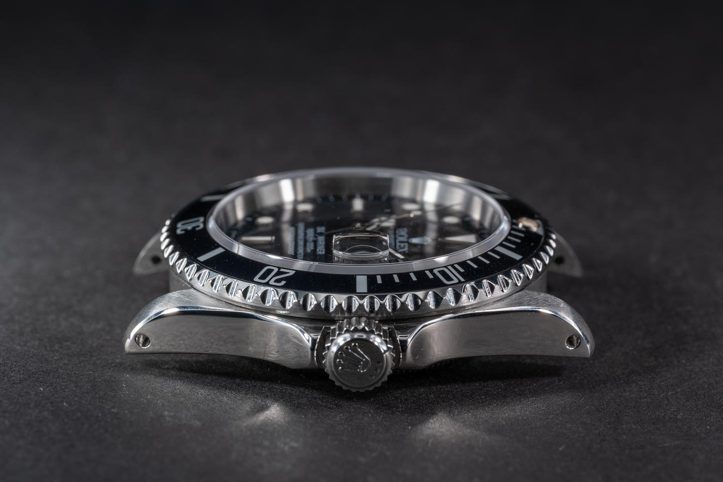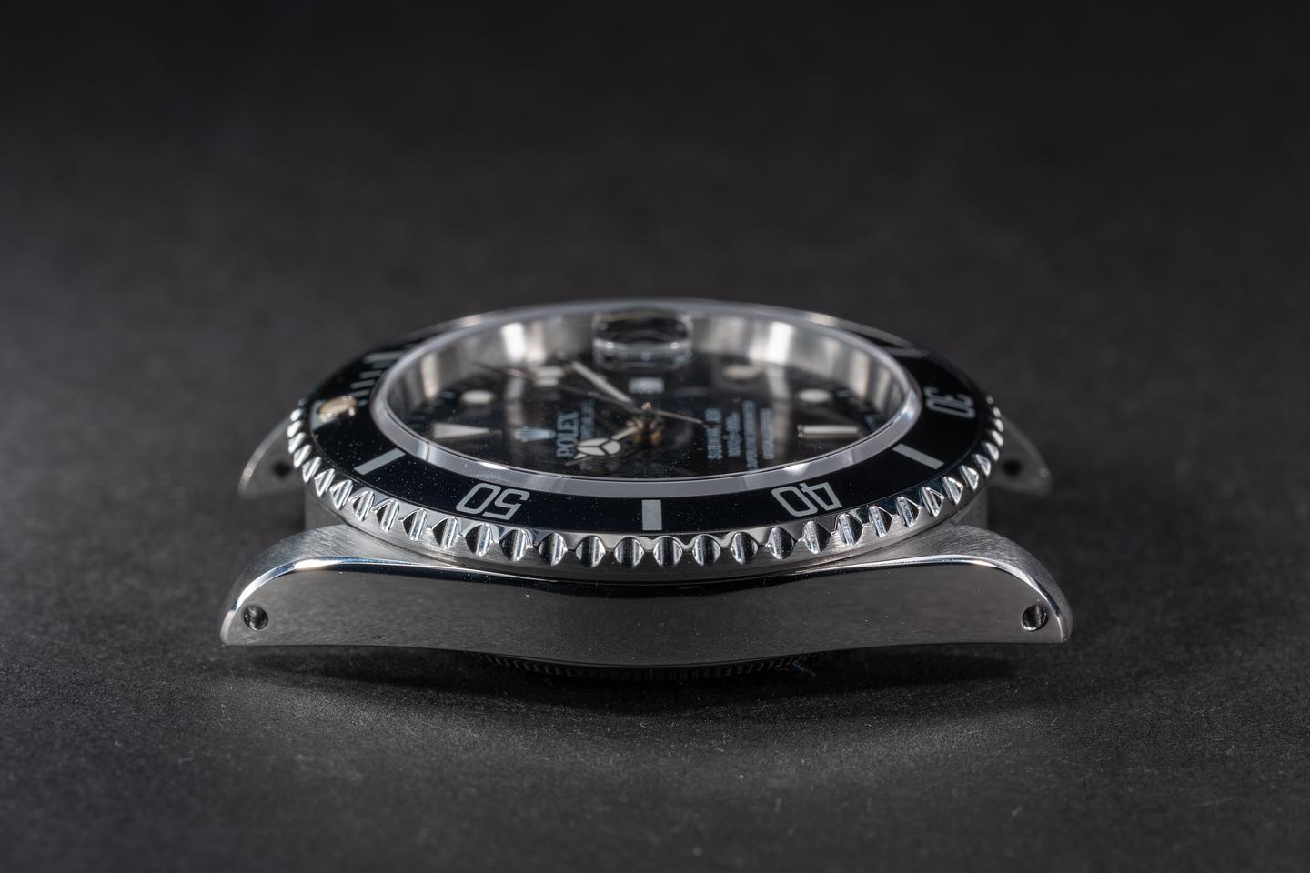 Case: The recently polished case is excellent showing sharp prominent bevels and only very light wear from use. The bezel insert is also in excellent condition showing only very light wear.