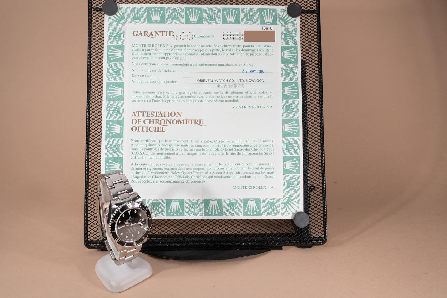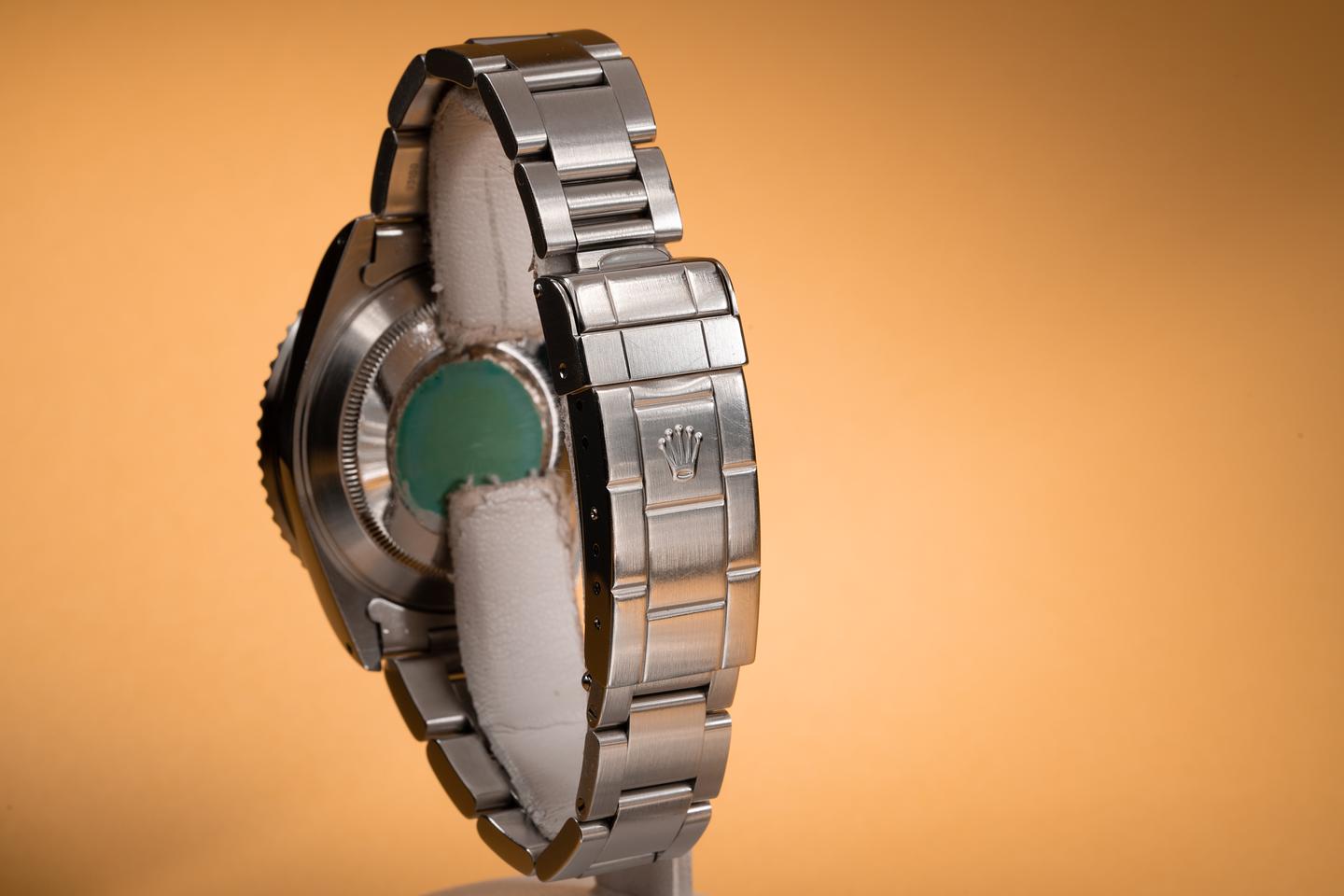 Bracelet: The 12 link oyster bracelet is excellent showing only light stretch for its age. The clasp is stamped with a matching 1998 date code.
