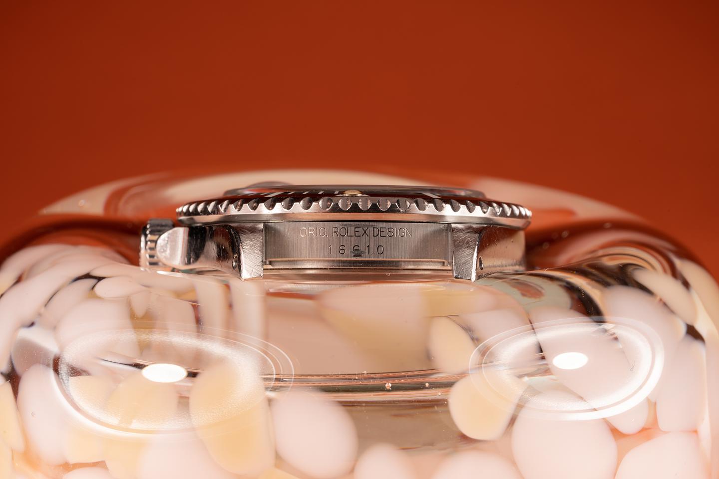Case: The previously polished case is excellent showing some wear from use. The black bezel insert is also excellent and shows some light wear from use.