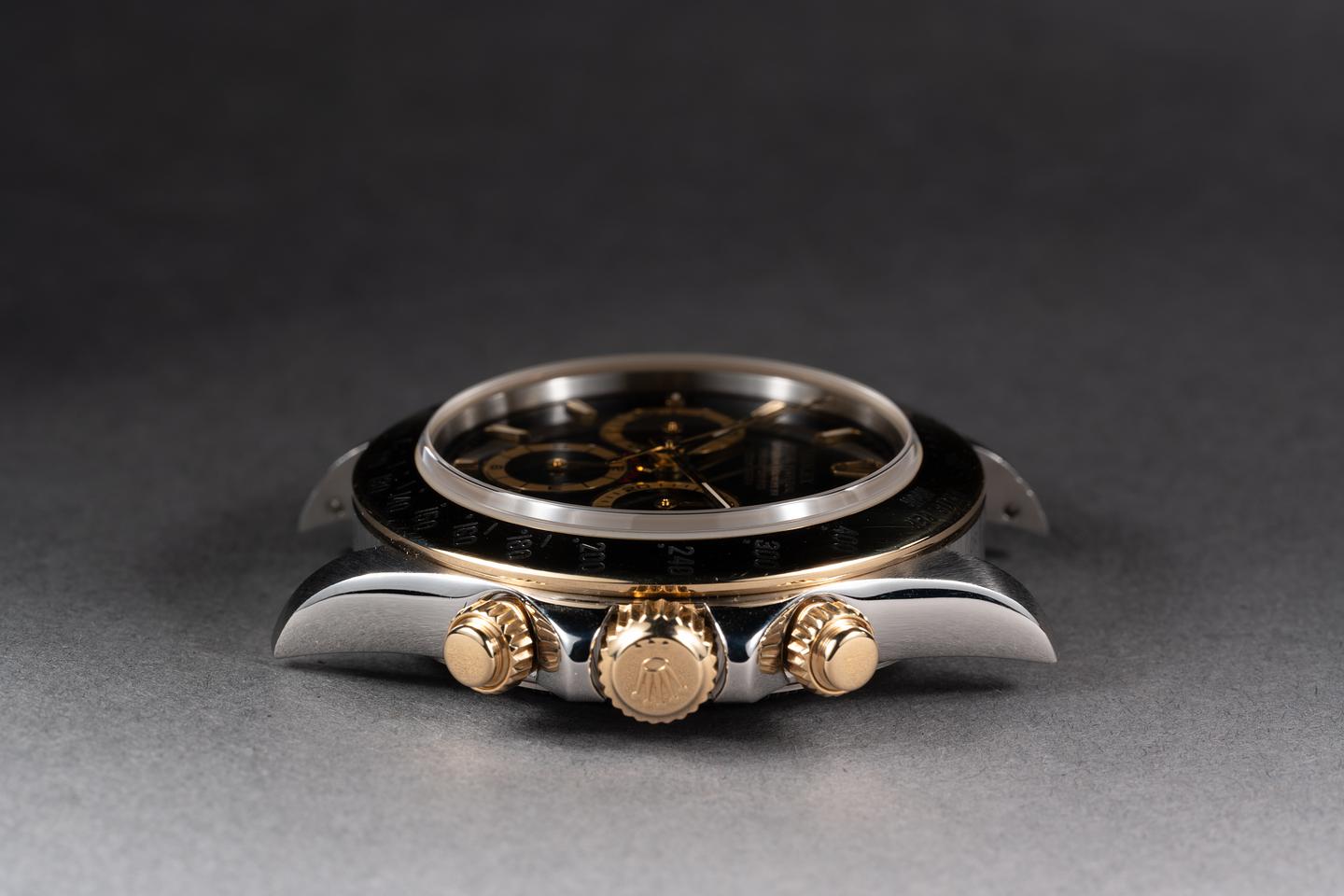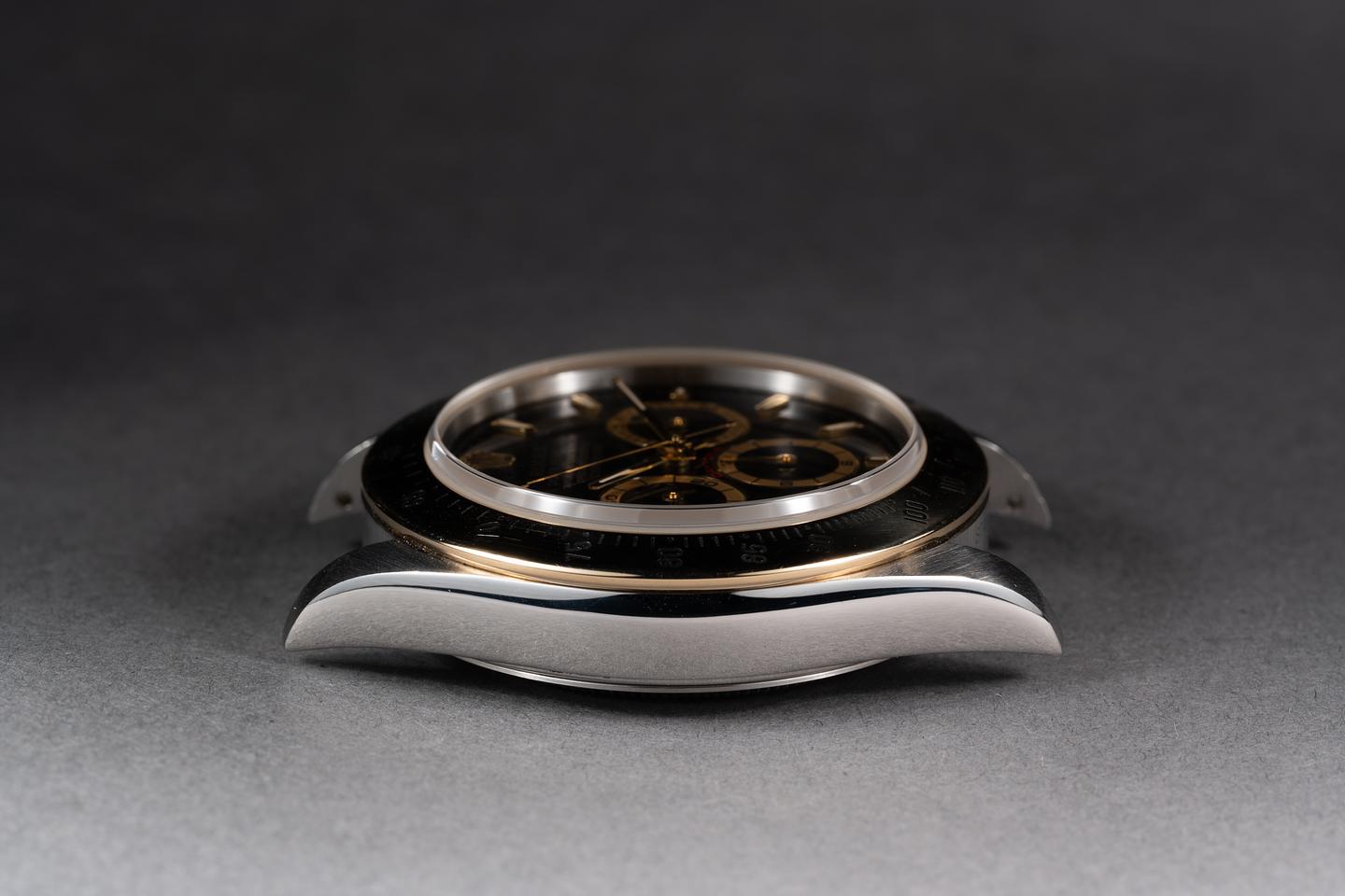 Case: The thick, sharp, and even case has just returned from polishing. The freshly polished 18k yellow gold bezel is also in excellent condition.