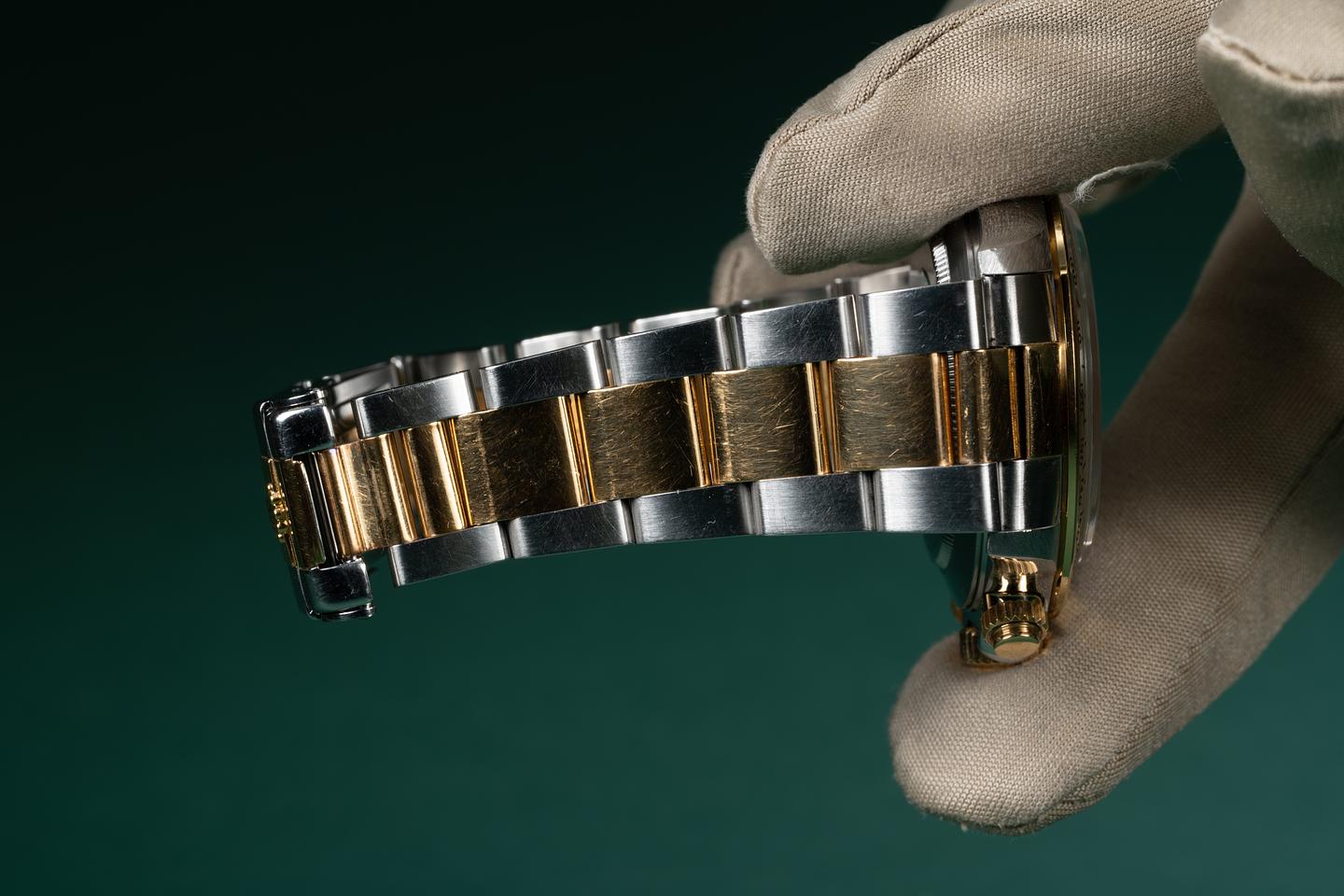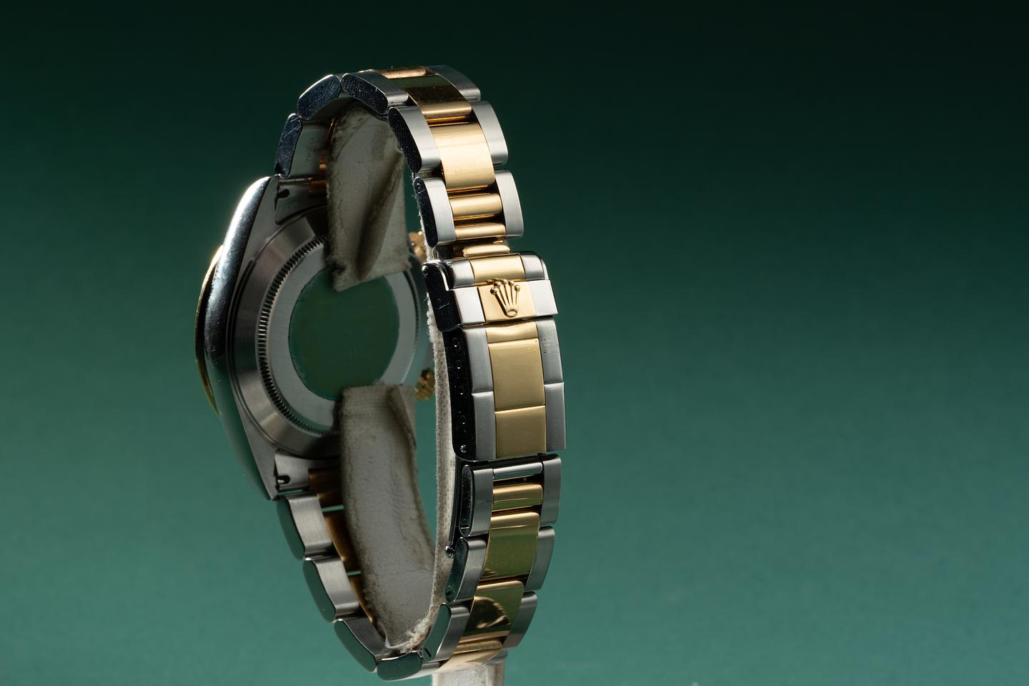 Bracelet: The 13 link two-tone Oyster bracelet is excellent showing only very light stretch for its age. The clasp is stamped with a matching 1998 date code.