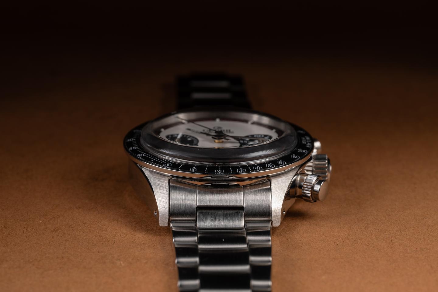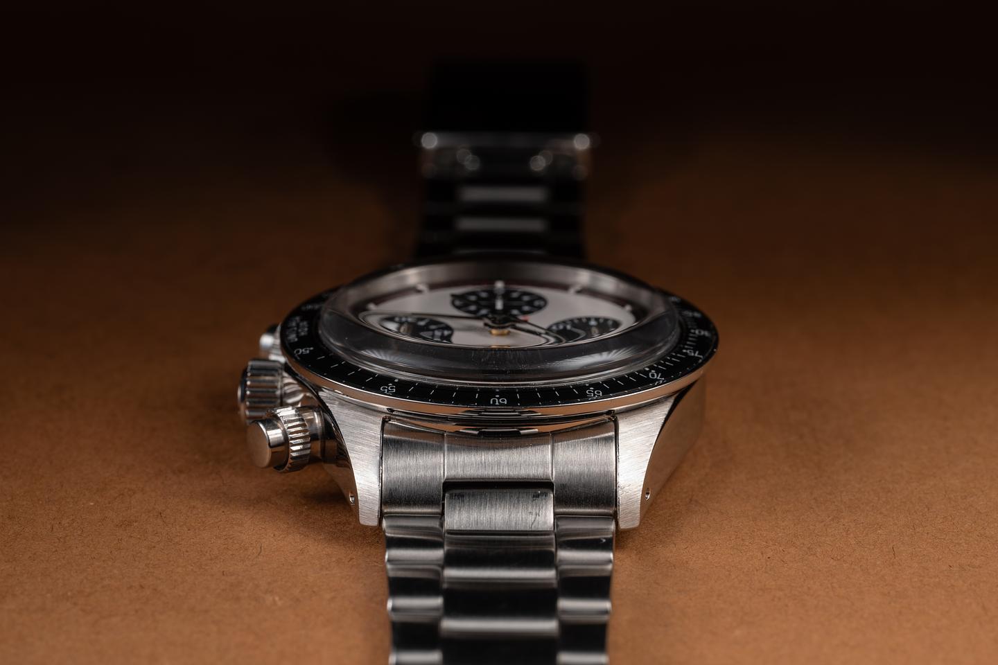 Case: The sharp 37mm case is excellent, showing only light wear from use. The black bezel insert is also in excellent condition, showing only light wear from use.