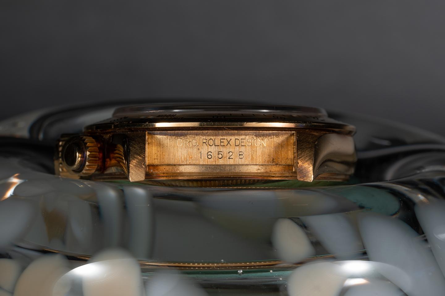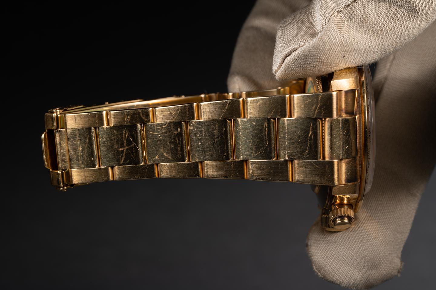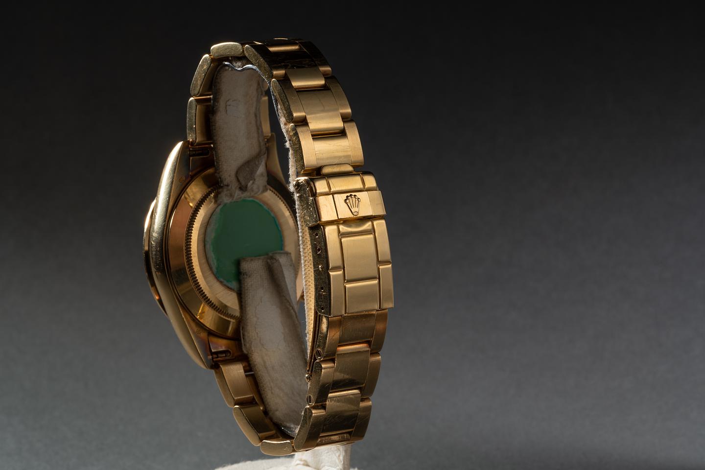 Bracelet: The 13 link 18K yellow gold Oyster bracelet is excellent showing only very light stretch for its age. The clasp is stamped with a 1998 date code.