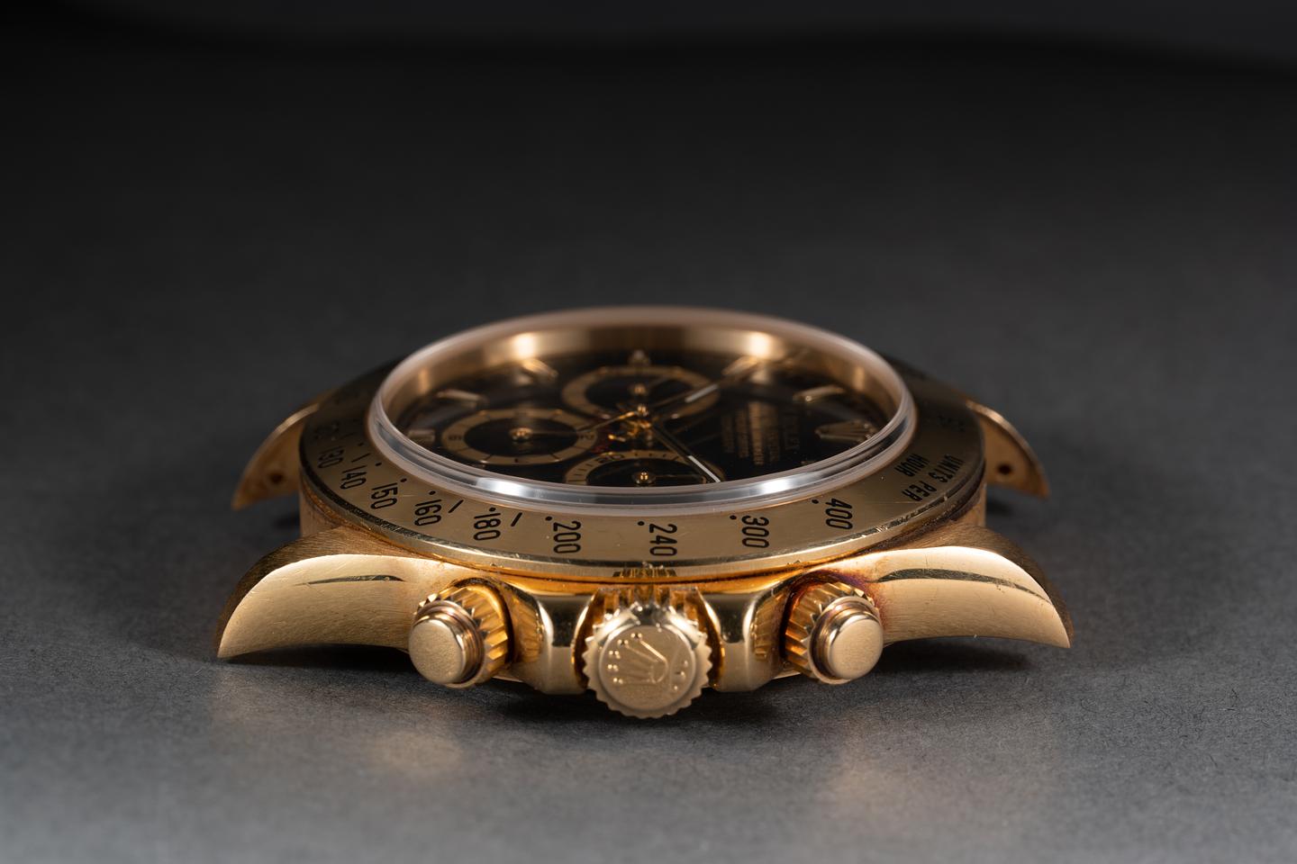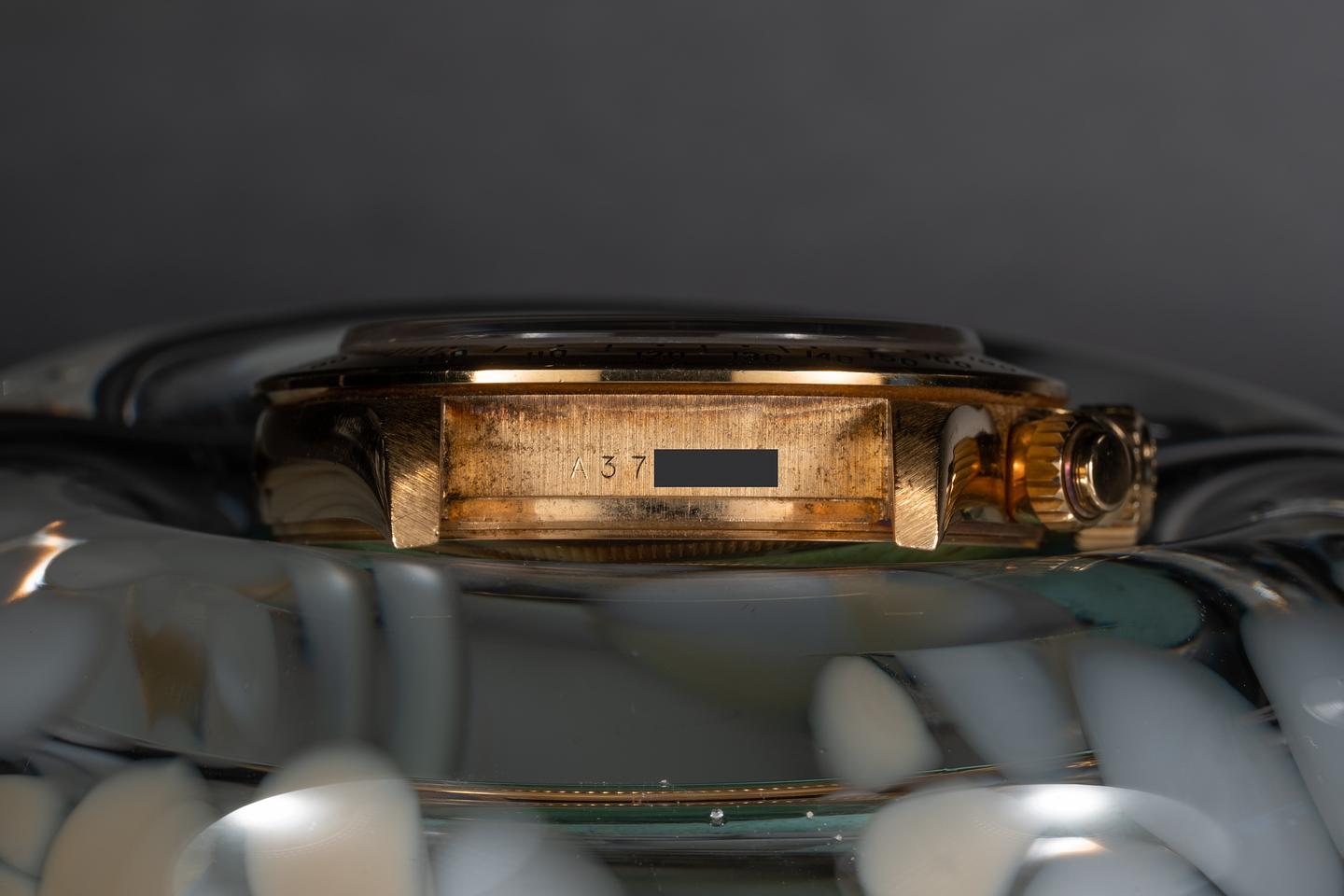 Case: The unpolished 18k yellow gold case is excellent showing a warm rosy patina and only light wear from use. The 18k yellow gold bezel is also in excellent condition showing only light wear from use.