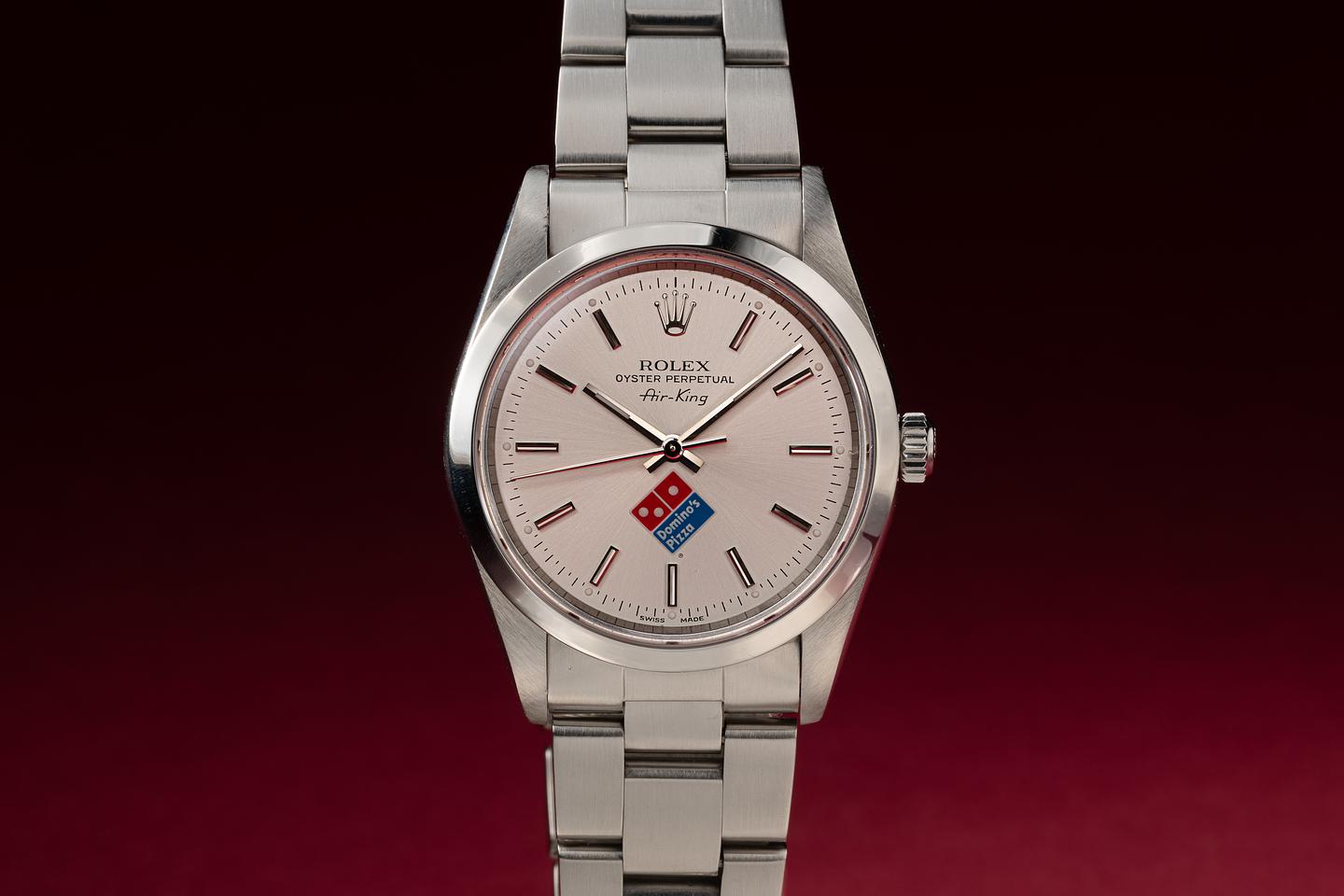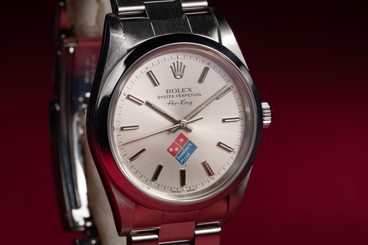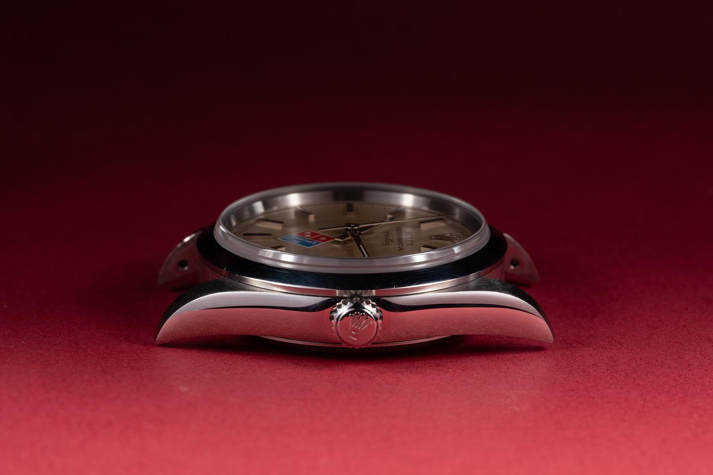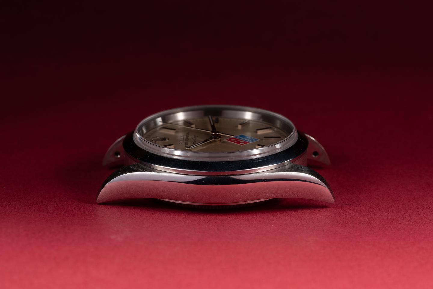 Dial: The silver "Domino's Pizza" dial is excellent showing no visible wear. The original factory hands are matching.