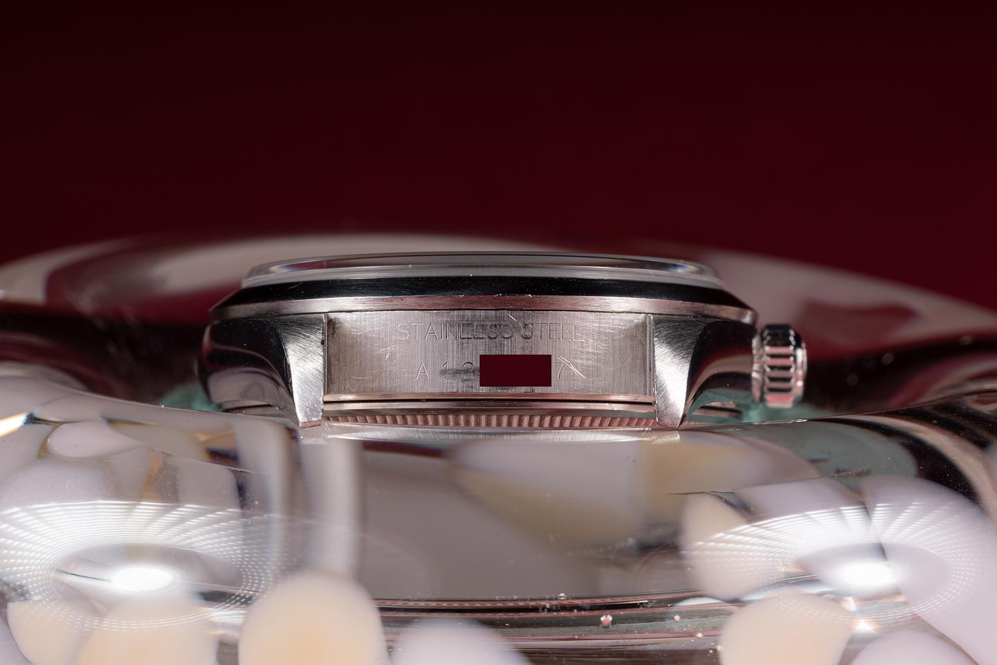 Case: The 34mm case is excellent showing only light wear from use. The smooth stainless bezel is also in excellent condition showing only very light wear from use.