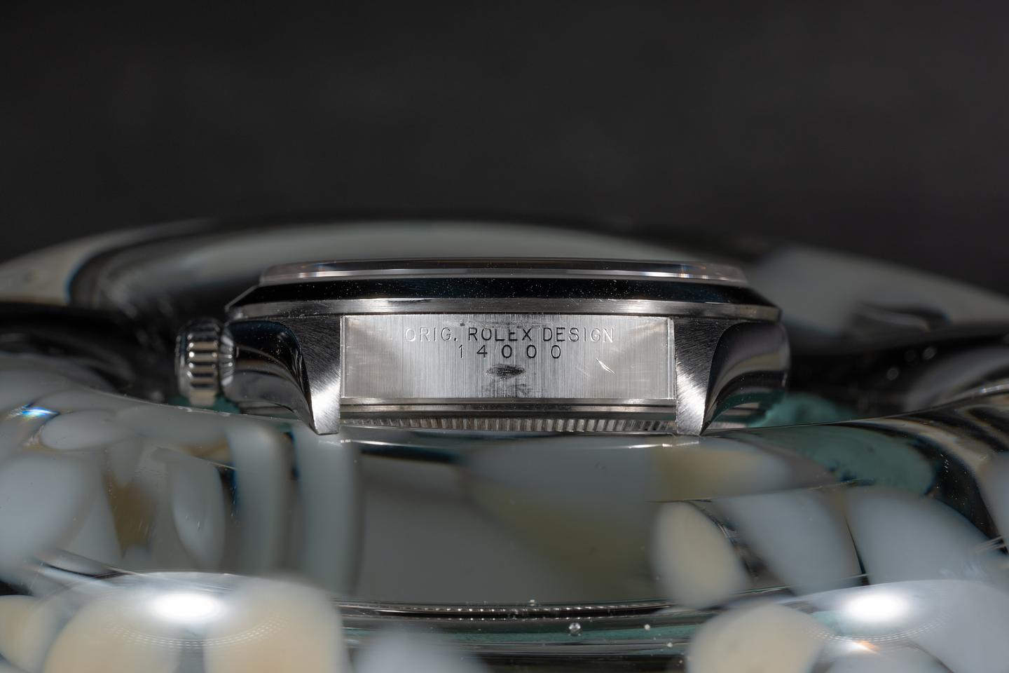 Bracelet: The 12 link oyster bracelet is excellent showing only very light stretch for its age. The clasp is stamped with a matching 1999 date code.