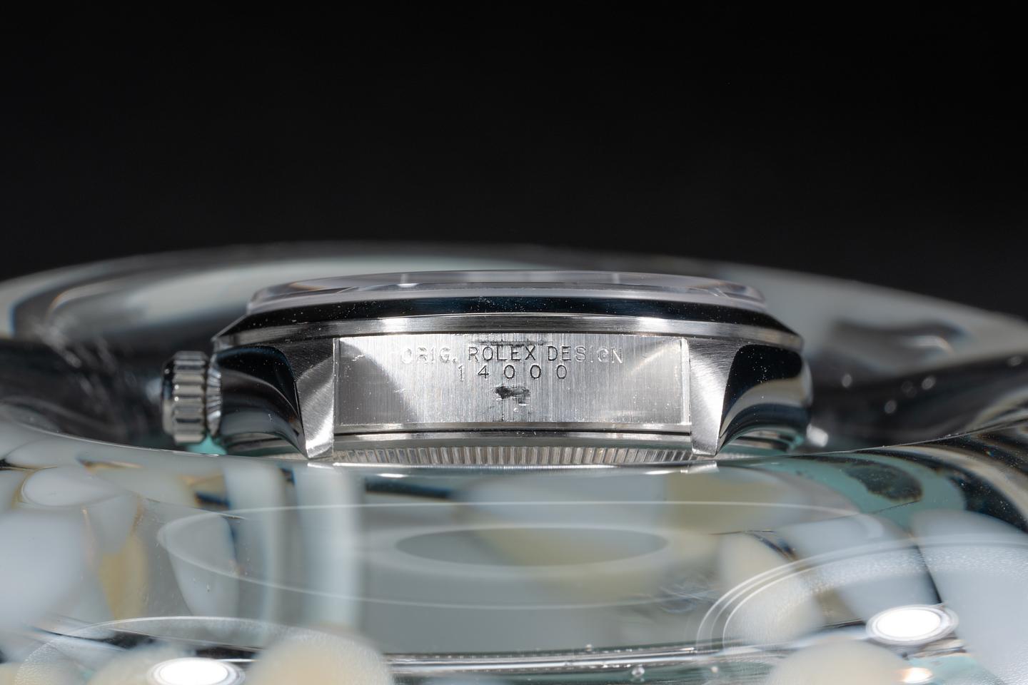 Bracelet: The 12 link Oyster bracelet is excellent showing light stretch for its age. The clasp is stamped with a 2000 date code.
