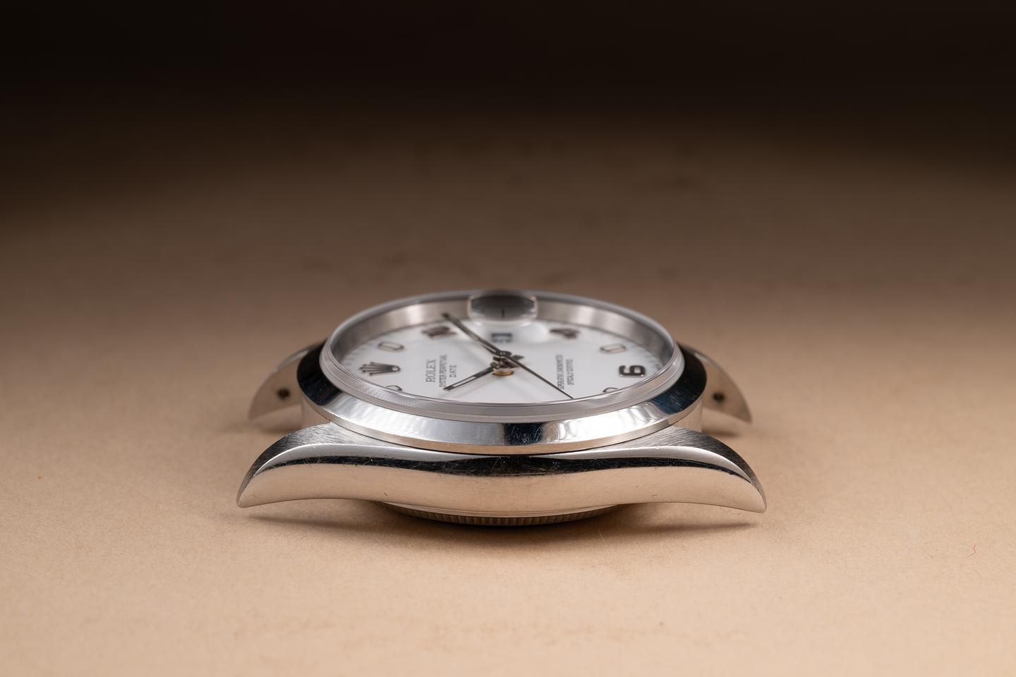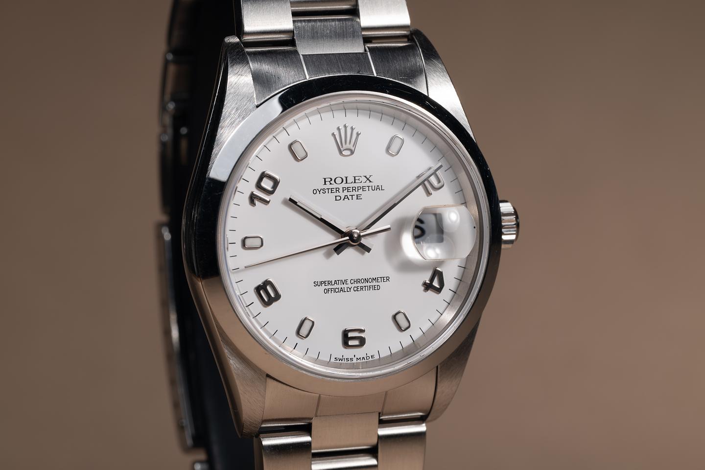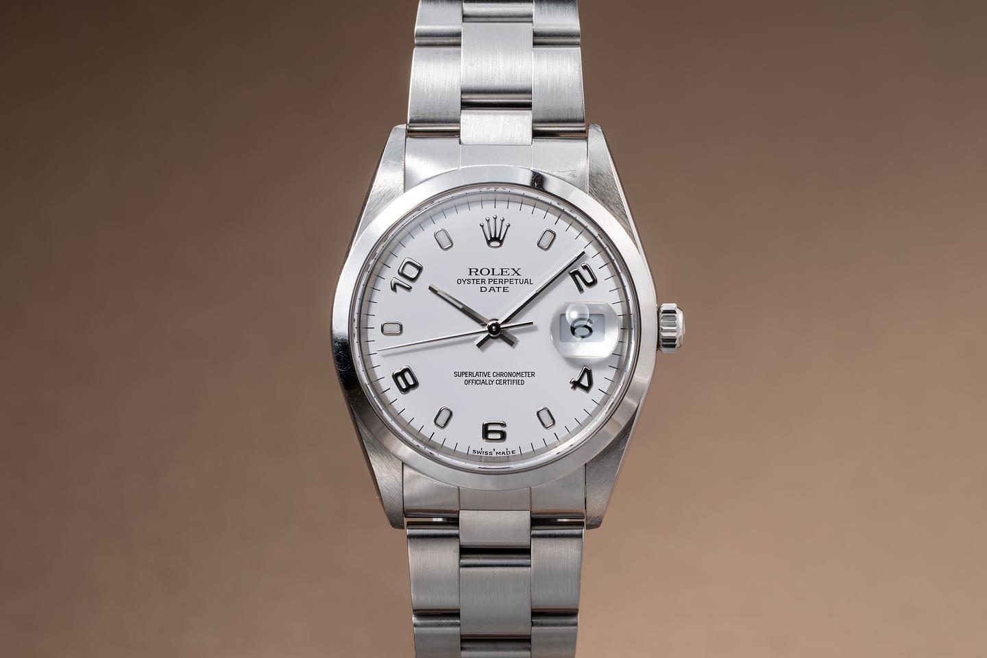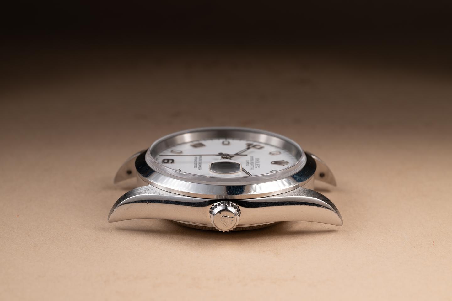 Dial: The white Arabic dial is excellent, showing no visible wear. The original factory hands are matching.