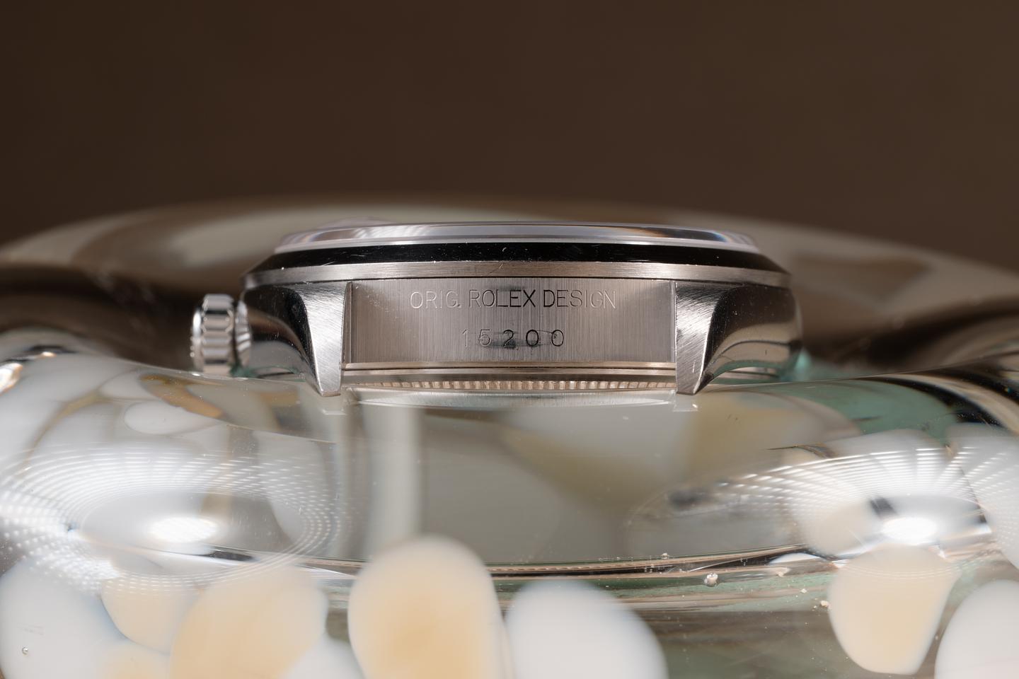 Bracelet: The 22-link Jubilee bracelet is excellent, showing only light stretch for its age. The clasp is stamped with a matching 1999 date code.