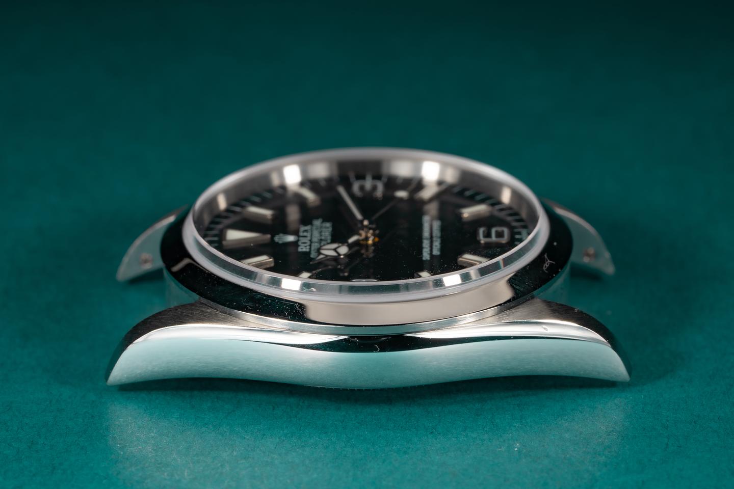 Case: The thick and even case is excellent showing only very light wear. The smooth stainless bezel is also excellent showing only very light wear.